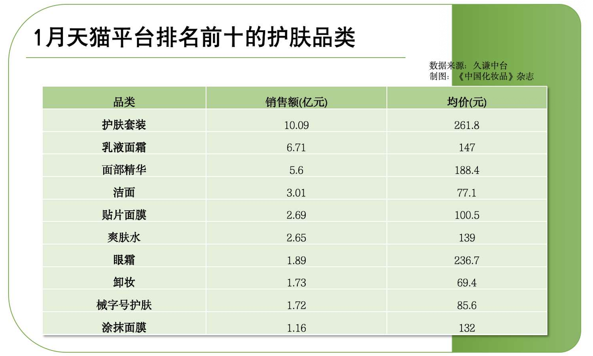 受到中国传统节日春节的影响,以及各大平台开启的“年货节”拉动,1月份美妆销售迎来小高峰。