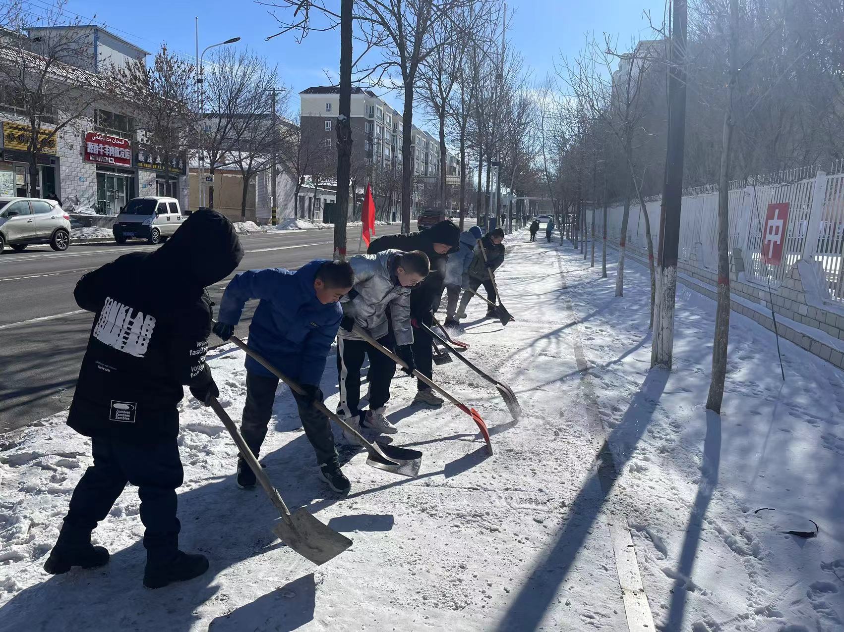 校门外的小路上,铲冰除雪的同学同样也干的热火朝天,他们挥锹握帚,充分发扬了不怕苦、不怕累的精神,利用有限的时间,积极主动、默契配合,甩开膀子,撸起衣袖,干劲十足,为校门口创造了一个安全的出行环境,为广大师生和市民清扫出了一条“平安路”、“文明路”,充分展现了一小学子乐于奉献、勇于担当的良好风貌。