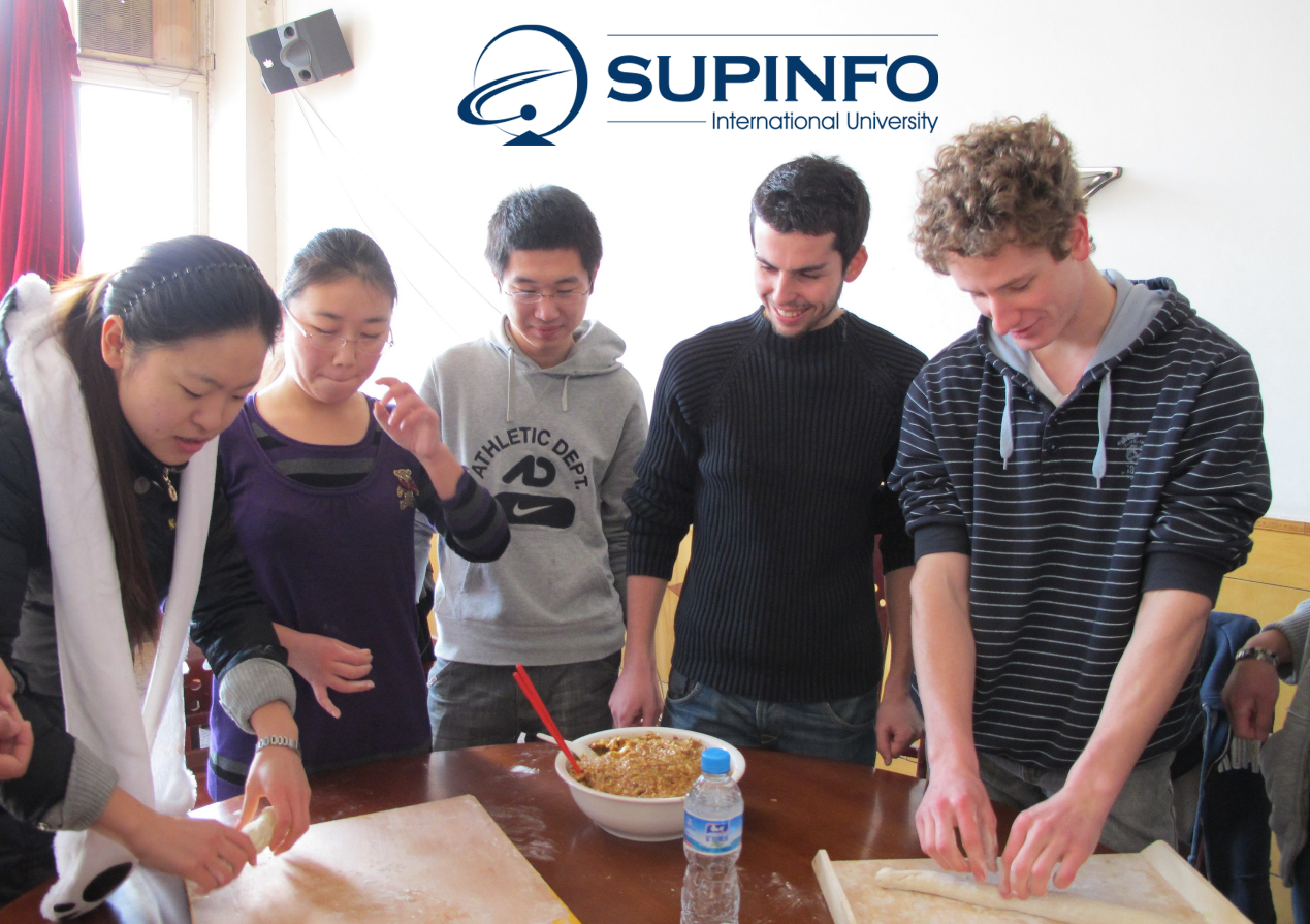 SUPINFO中国学生在教外国同学包饺子。SUPINFO供图