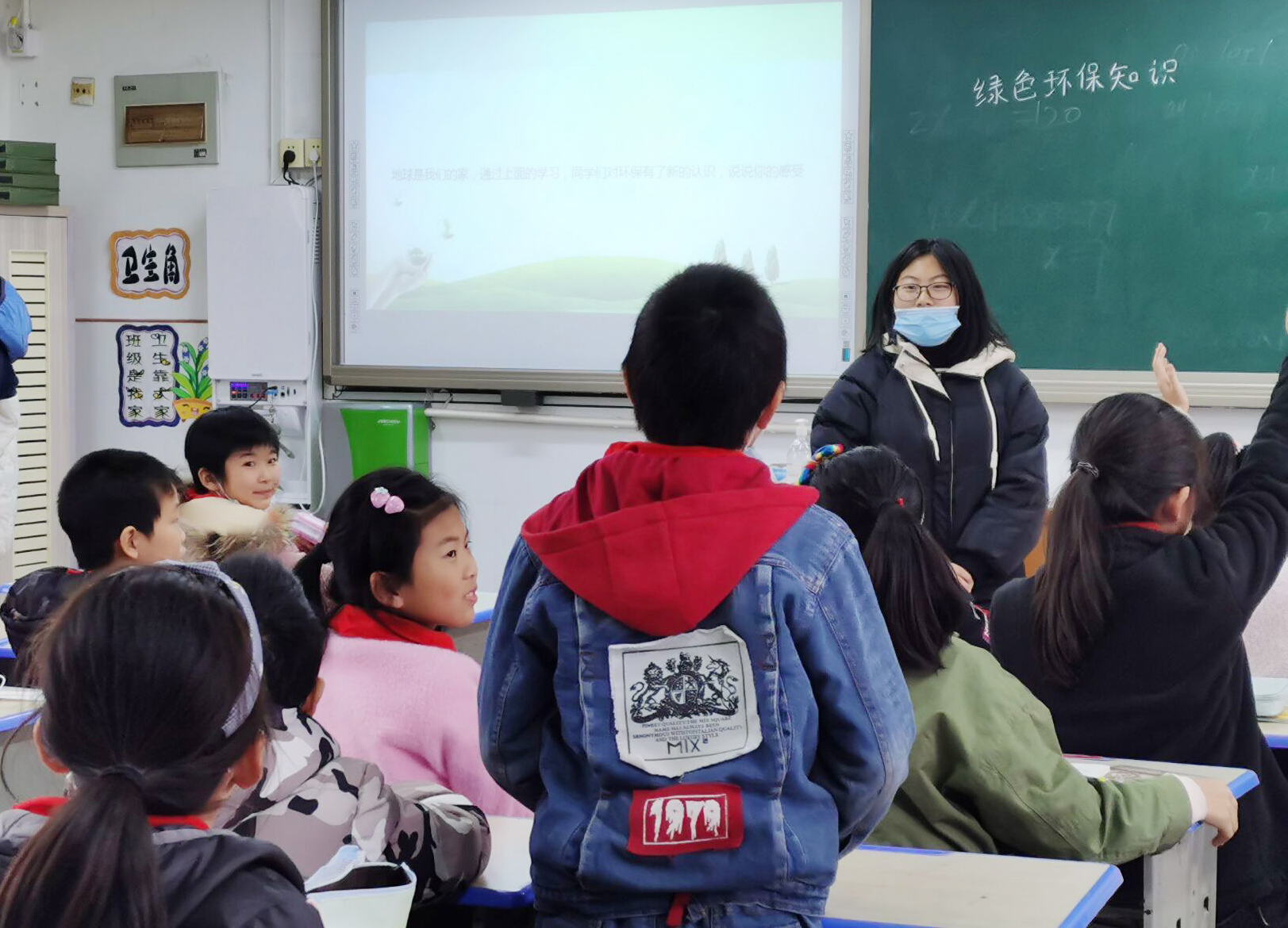 活动中,志愿者用朴实的语言向同学们介绍着绿色环保的小知识,展示了节约用水的标志,并引导同学们绘制环保标识。为加深同学的印象,志愿者们以提问的方式来让同学们抢答,同学们积极举手参与互动,将学到的环保小知识更加融会贯通。