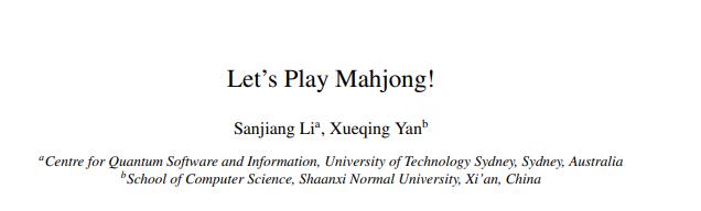 2.Sanjiang Li , Xueqing Yan. Let’s Play Mahjong! arXiv:1903.03294v1
