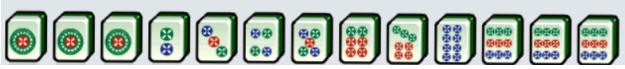 先补充点背景知识。标准麻将牌包含“筒”、“条”、“万”、“风”和“箭”五套花色,每种牌有4张是相同的。4名玩家初始摸得13张牌,之后按照逆时针摸一张牌再打出一张牌,直到他摸到最后一张牌,14张牌可以凑成23333的排列组合,即为胡牌。
