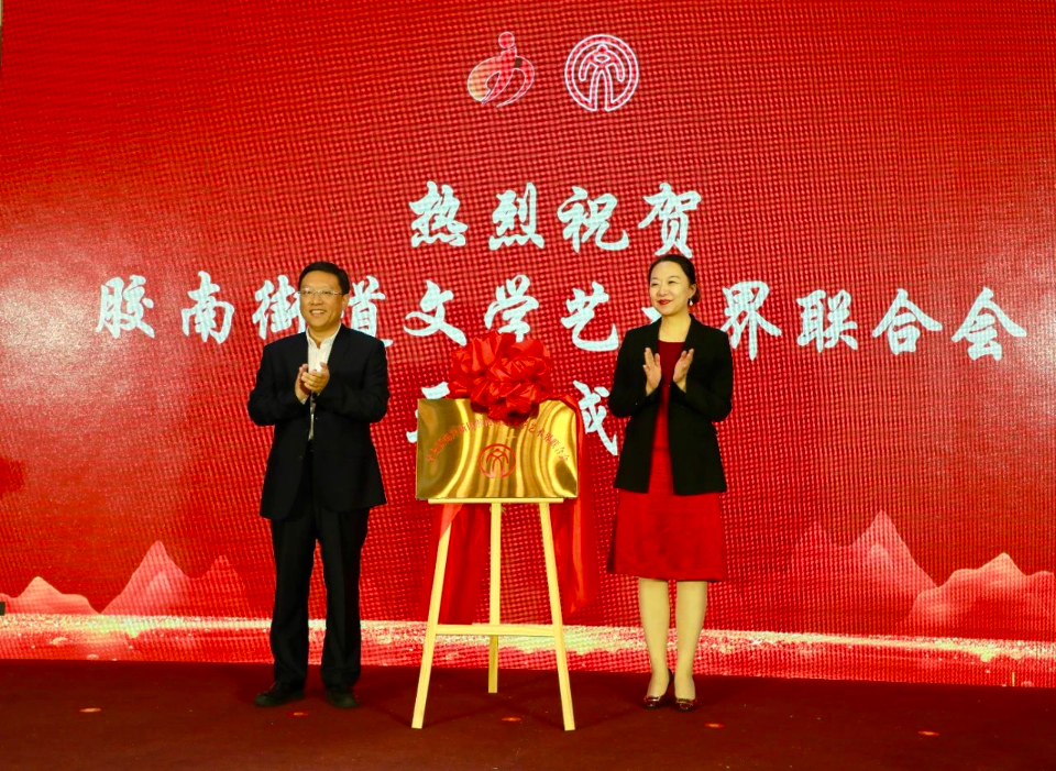 区文联党组书记、主席彭少华,胶南街道党工委书记张朝洋共同为胶南街道文联揭牌。