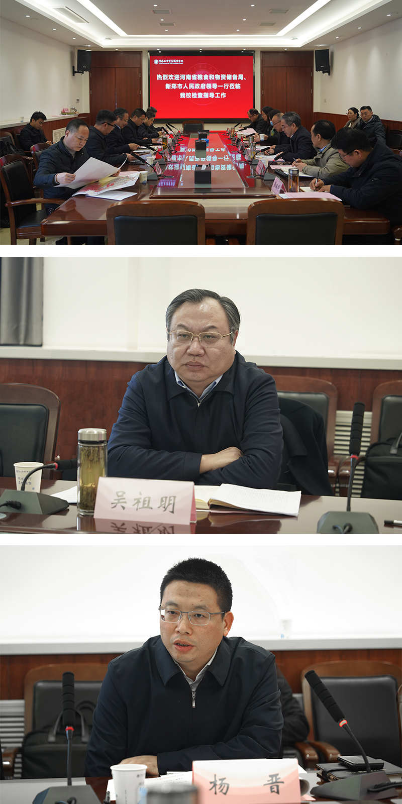 3月5日,河南省粮食和物资储备局党组书记吴祖明,新郑市委副书记、市长杨晋一行到河南工业贸易职业学院龙湖校区调研指导工作。校党委书记李国锋、校长曹利强及班子成员陪同调研。