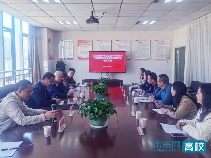 3月7日上午,云南机电职业技术学院党委副书记、校长伍星带队到昆明市盘龙职业高级中学考察交流。