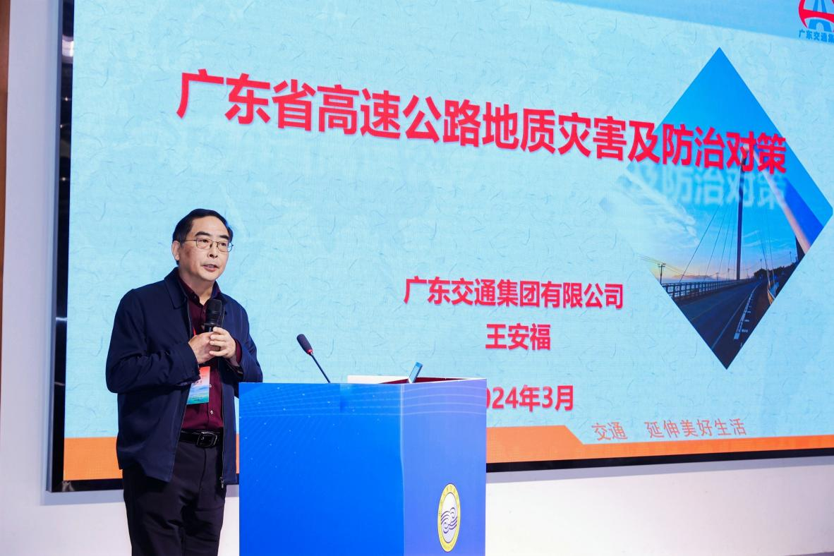 广东交通集团有限公司副总工程师王安福,做了广东省高速公路地质灾害及防治对策的报告。