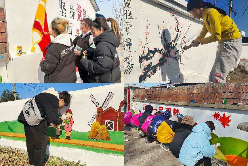 艺术设计学院的师生们深入塔峪镇,感受乡镇的淳朴与美丽,领略当地的村容村貌,同时了解塔峪镇在文化创意产业方面的发展现状和需求。塔峪镇领导也热情接待了这群充满活力的青年,向他们介绍了当地的产业链、特色农产品,共同探讨校地合作的美好前景。镇政府领导还与老师们开展座谈,就校地合作模式、项目合作框架等方面展开了深入交流。最终,双方在促进校地资源共享、加强校地合作、推动大学生社会实践、助力乡村振兴等方面达成了一系列合作意向,为未来奠定了坚实的基础。从2023年9月开始,学院60余人分三次赴塔峪镇开展系列墙绘活动,并取得了良好成效,被抚顺市电视台宣传报道。此次活动也是艺术设计学院“‘抚’笔画雷锋 ‘油’彩绘辽宁”特色品牌活动的一部分。