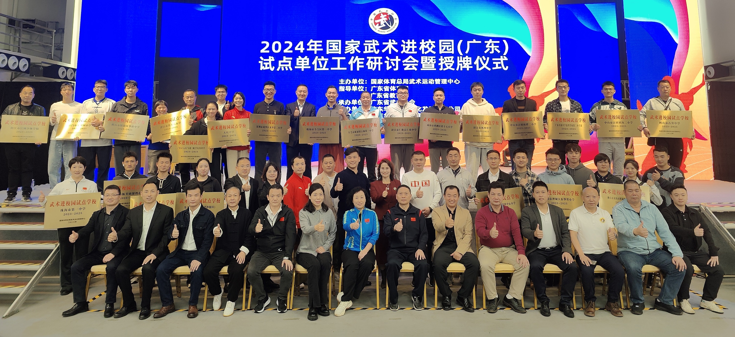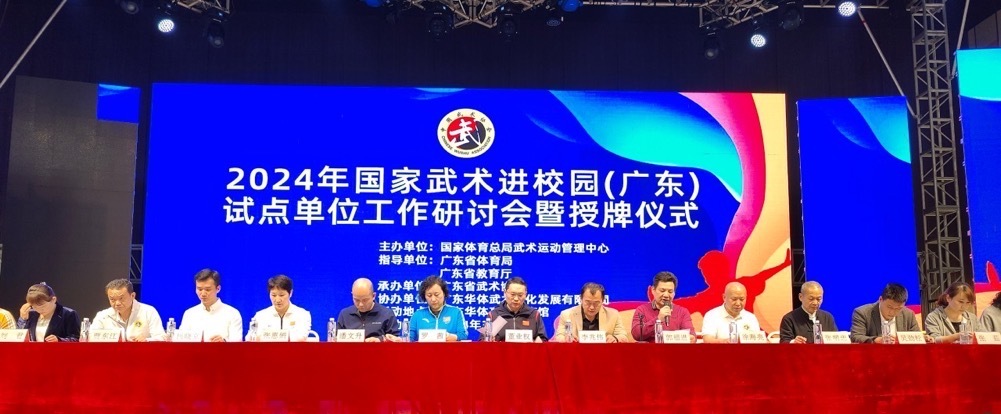 此次武术进校园试点单位工作研讨会由国家体育总局主办,广东省武术协会承办。广东省教育厅体育卫生与艺术教育处二级调研员董业权、广东省体育局青少年处副处长罗茜、广州中医药大学体育健康学院院长、广东省武术协会副主席李兆伟,广东省武术协会副秘书长郭福进等以及全省62所武术进校园试点学校的代表出席本次会议。