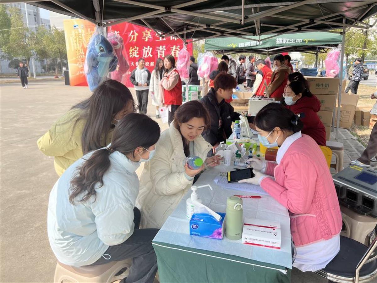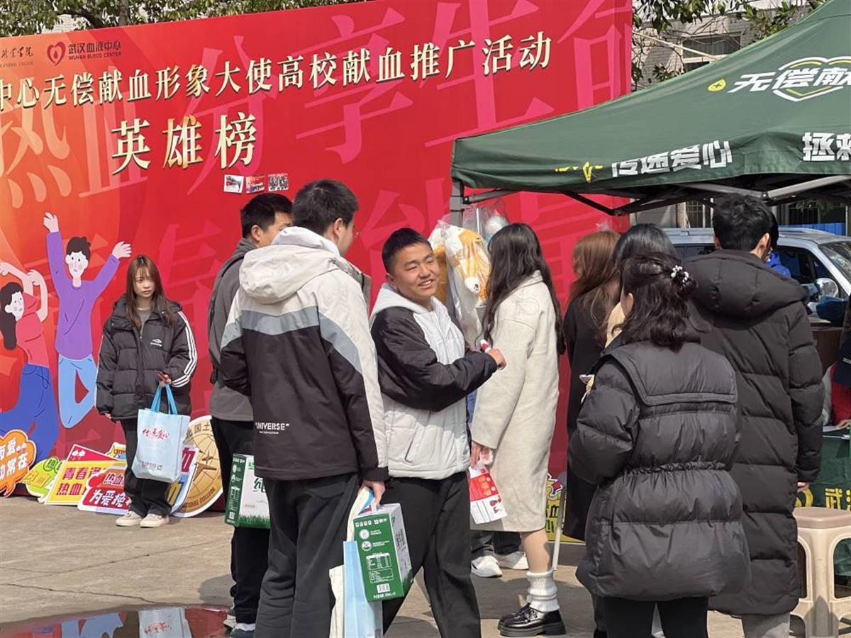 3月7日10时,学校联合武汉市血液中心等单位举办无偿献血活动。学校Hi英语俱乐部、优声印象协会、清风音乐社和FD舞蹈社等4个社团分别表演了具有特色的节目为活动热场,表演充分展示该校学子朝气蓬勃、昂扬向上的精神风貌。武汉血液中心专业人员来到现场,通过讲解专业知识为大家解答了无偿献血的种种疑虑,向大家普及了无偿献血的重要性和意义。当天,学校被授予“武汉市无偿献血爱心高校”的牌匾,学校党委书记夏彦接牌。参与献血的刘星宇同学说:“这是我第三次献血了,学校近几年每年都在组织无偿献血,每次看到许多师生迈着坚定的步伐走向献血车,我就觉得我们都是战士,我想,我们的每一次付出都可以为正在等待血液拯救生命的人群贡献绵薄之力,十分有意义。”