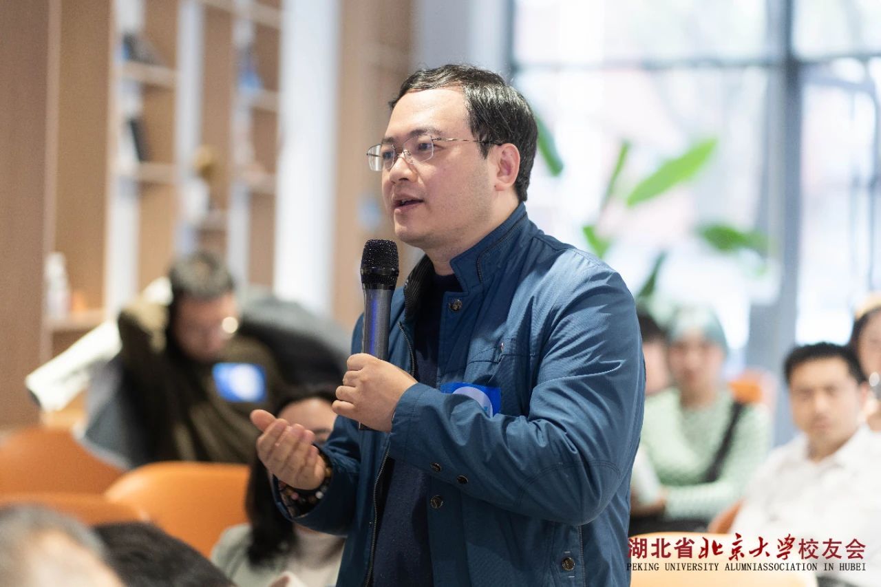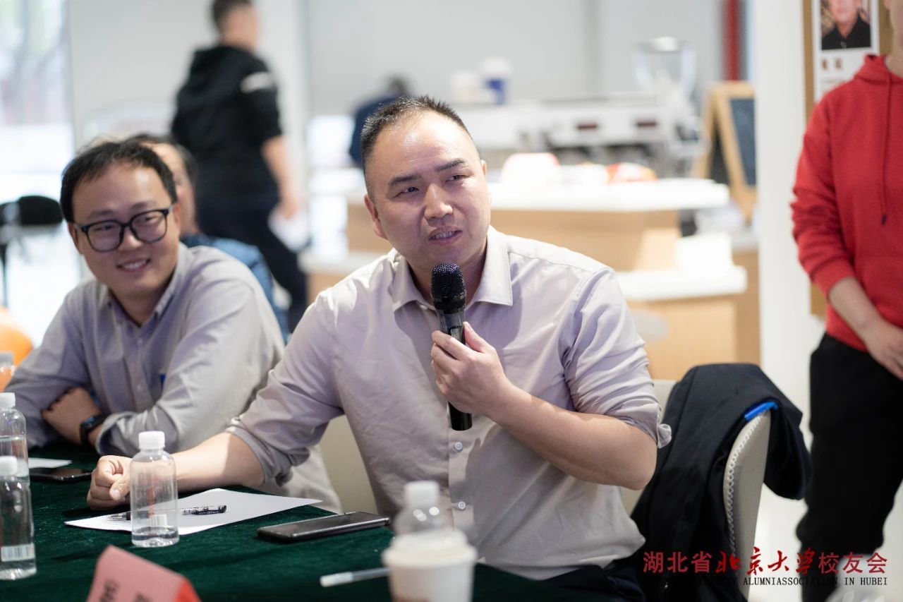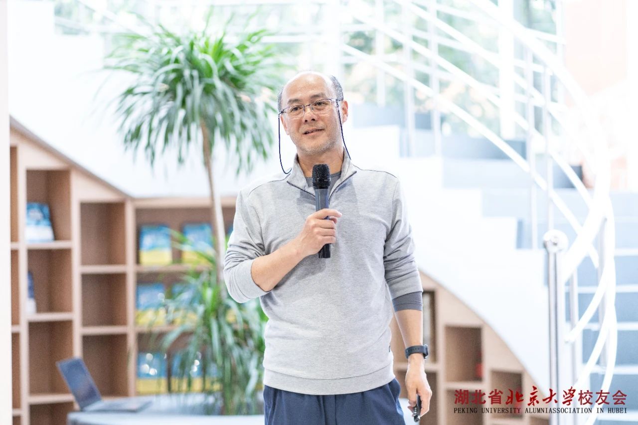 刘萌分享博约兼顾,广深结合。他表示,将与北大创业训练营一道,将更多的北大智慧、北大声音和北大元素,引流到光谷、到武汉、到湖北,共同在实现校地合作的创新放大、激荡创造和互利共赢等方面有所作为,他还介绍了即将在武汉举办的北大校友羽毛球赛等活动。