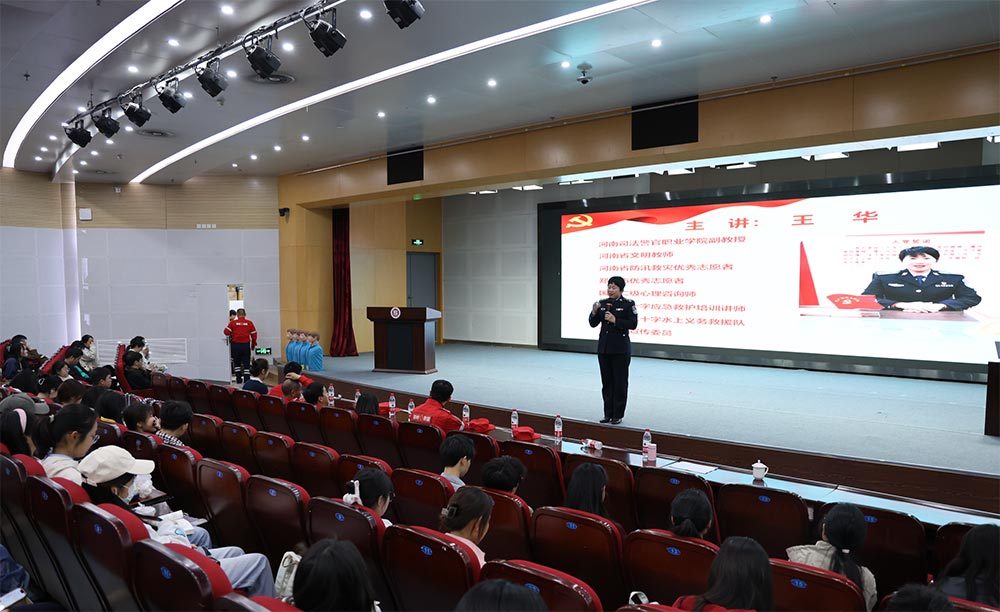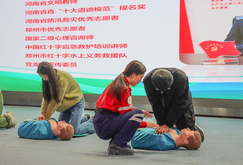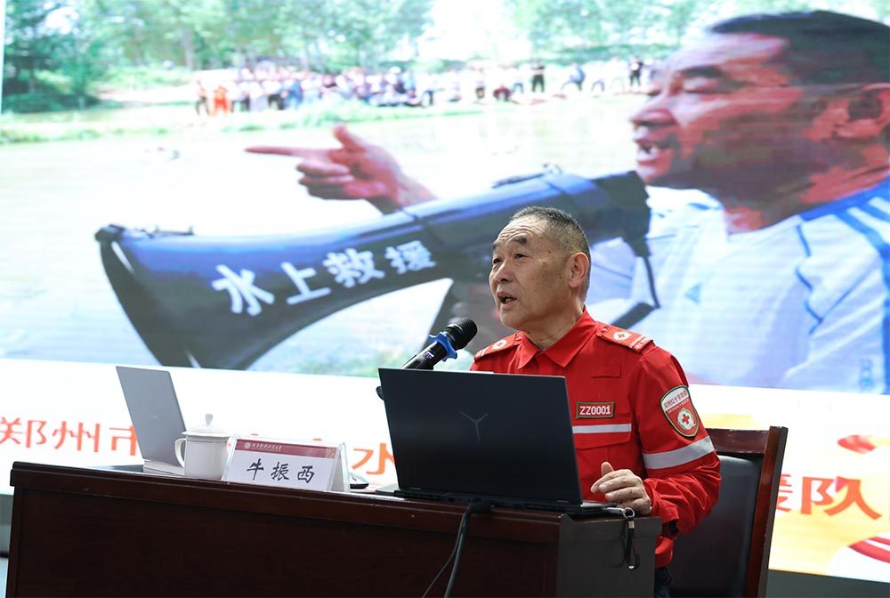牛振西结合团队发展、救援经历、思考感悟,多角度阐述了对雷锋精神和志愿服务精神的理解,回顾了救援现场用义举传递大爱的生动事迹。郑州市红十字水上义务救援队队员、河南司法警官职业学院副教授王华分享了应急安全知识,并带领队员演示了海姆立克急救法和心肺复苏两个应急救护操作技能。