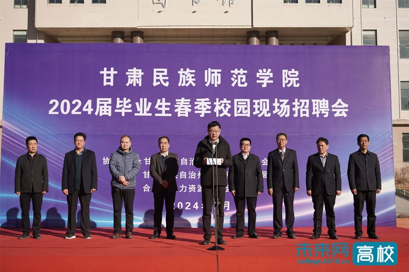 3月29日上午,甘肃民族师范学院2024届毕业生春季校园现场招聘会举行。学校领导班子成员贡力、牟吉信、敏贤麟、张正义、苟如虎出席招聘会开幕式,开幕式由学校党委委员、副校长李锦煜主持。