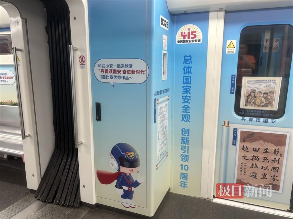 “国家稳,天下稳;国家安,百姓安”“维护国家安全人人有责……”一句句醒目的宣传标语,一幅幅精美的书画作品,搭配着“武小安”形象IP和国家安全重点领域、教育基地宣传展示图片,形成了充满趣味性与知识性的国家安全宣传氛围,让广大市民在乘坐地铁时“沉浸式”学习国家安全知识。