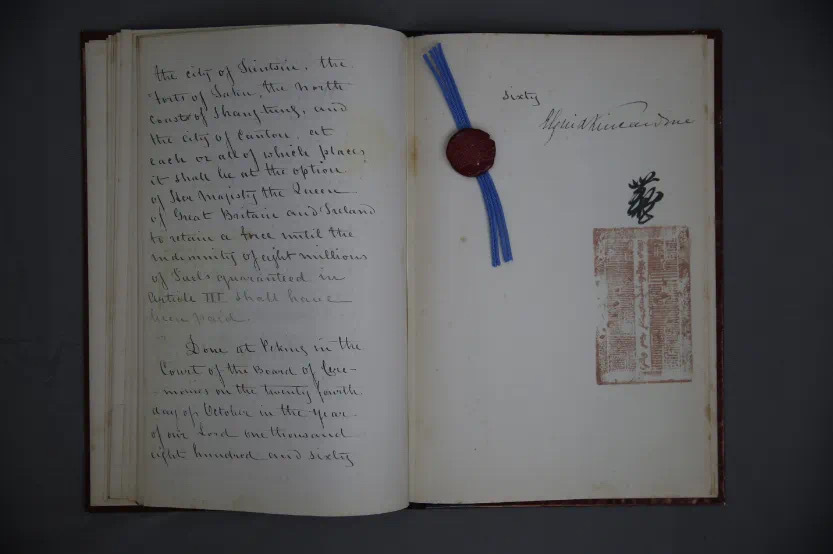 现代复制的第二次鸦片战争后签署的1860年中英“北京条约”。来源/鸦片战争博物馆