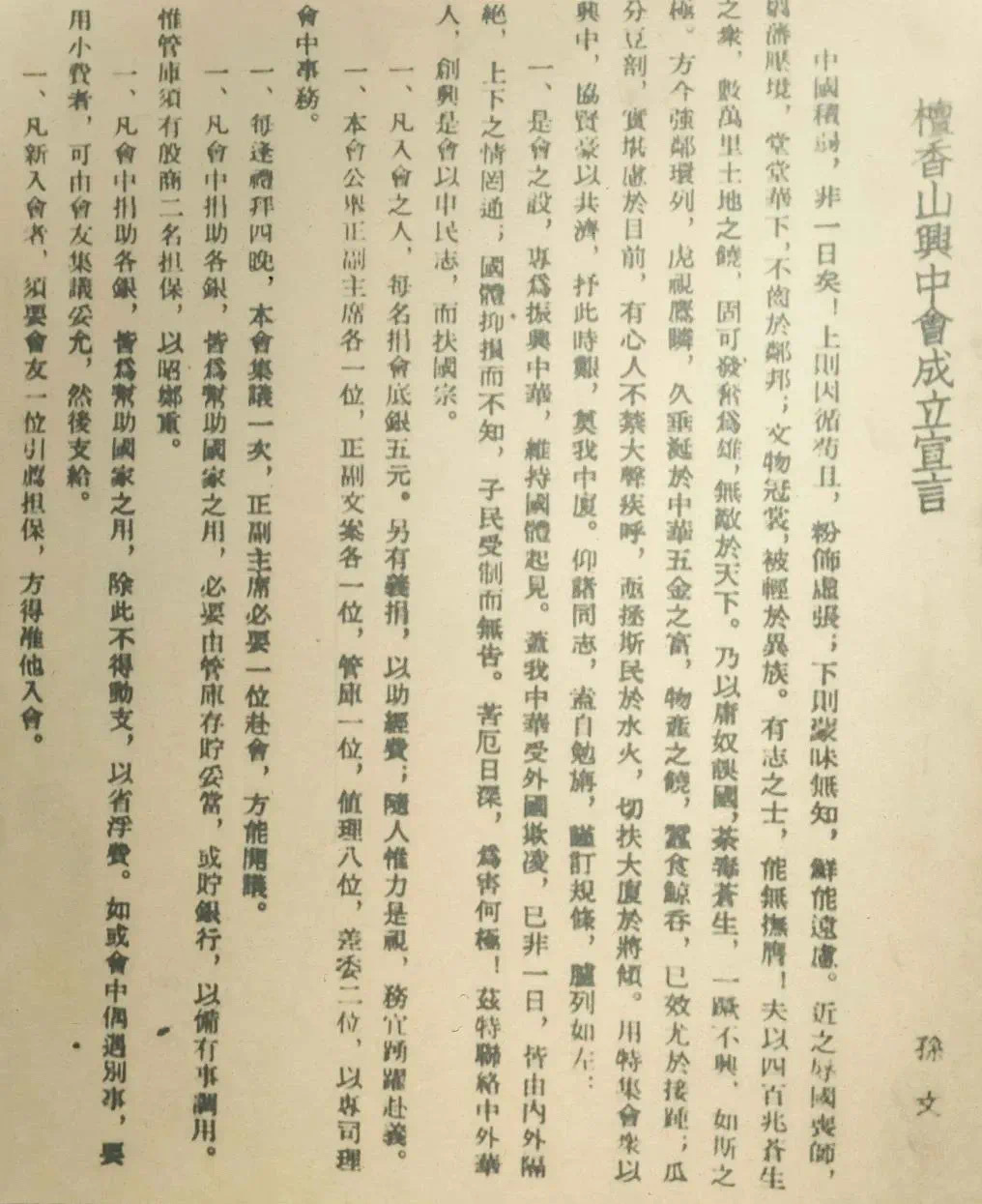 1894年孙中山撰写的檀香山兴中会成立宣言。来源/中国博物馆协会