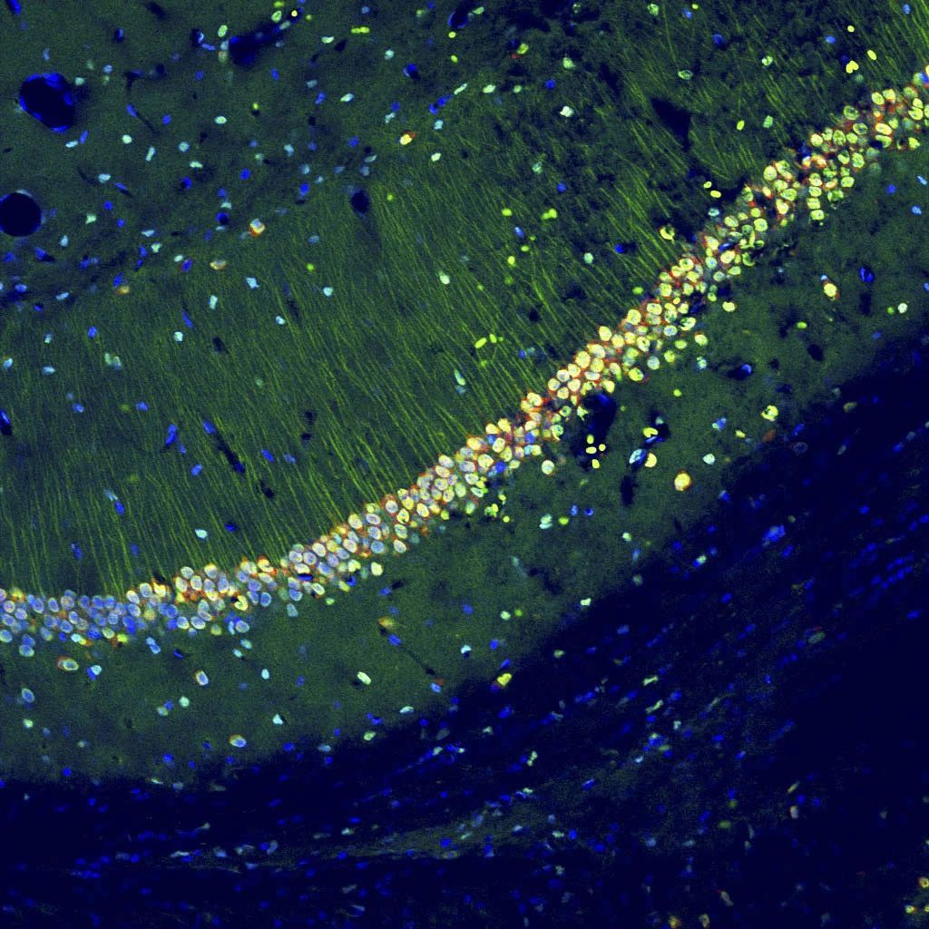 NeuN和HDAC9基因的双染就像是夜晚中交相呼应的萤火虫与飞蛾,把“灰暗的田野”映衬得充满生机,好像麦田里肆意生长的麦子。风吹麦浪,阵阵幽香。