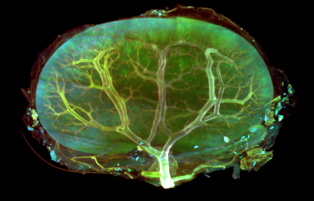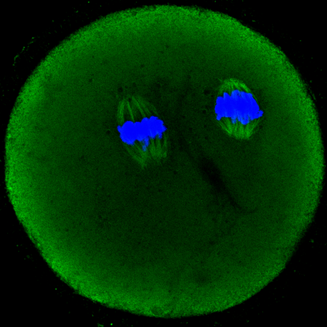 本图为通过免疫荧光染色的小鼠卵母细胞,绿色是纺锤丝,蓝色是DAPI。两簇纺锤丝包绕的细胞核,配合黑色的背景,像极了夜色里的南瓜灯。正如我们的科研生活,是重复不出的实验结果亦或是不经意间的惊喜发现,trick or treat ?无论结果如何,都是研究生涯中至关重要的一步。