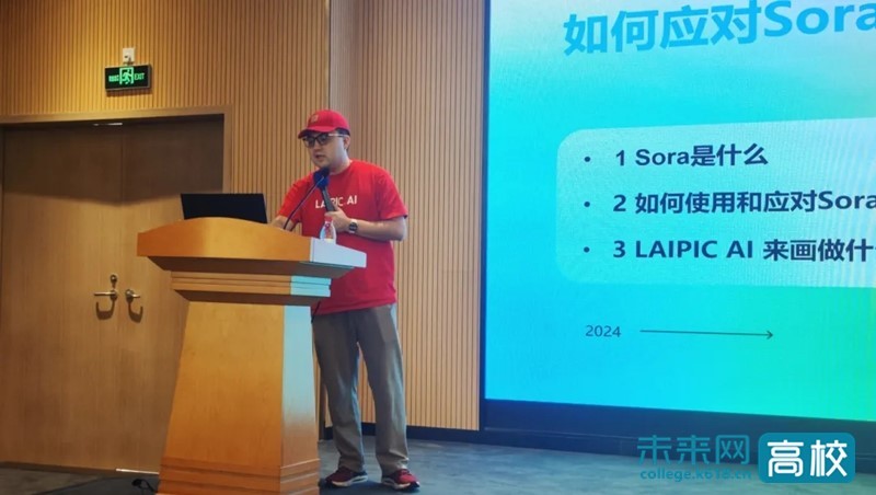 魏博先生从“如何应对Sora带来的影响”这个提问出发,依次向师生们讲解了Sora是什么?如何使用和应用Sora?以及LAIPIC AI来画主要做什么。