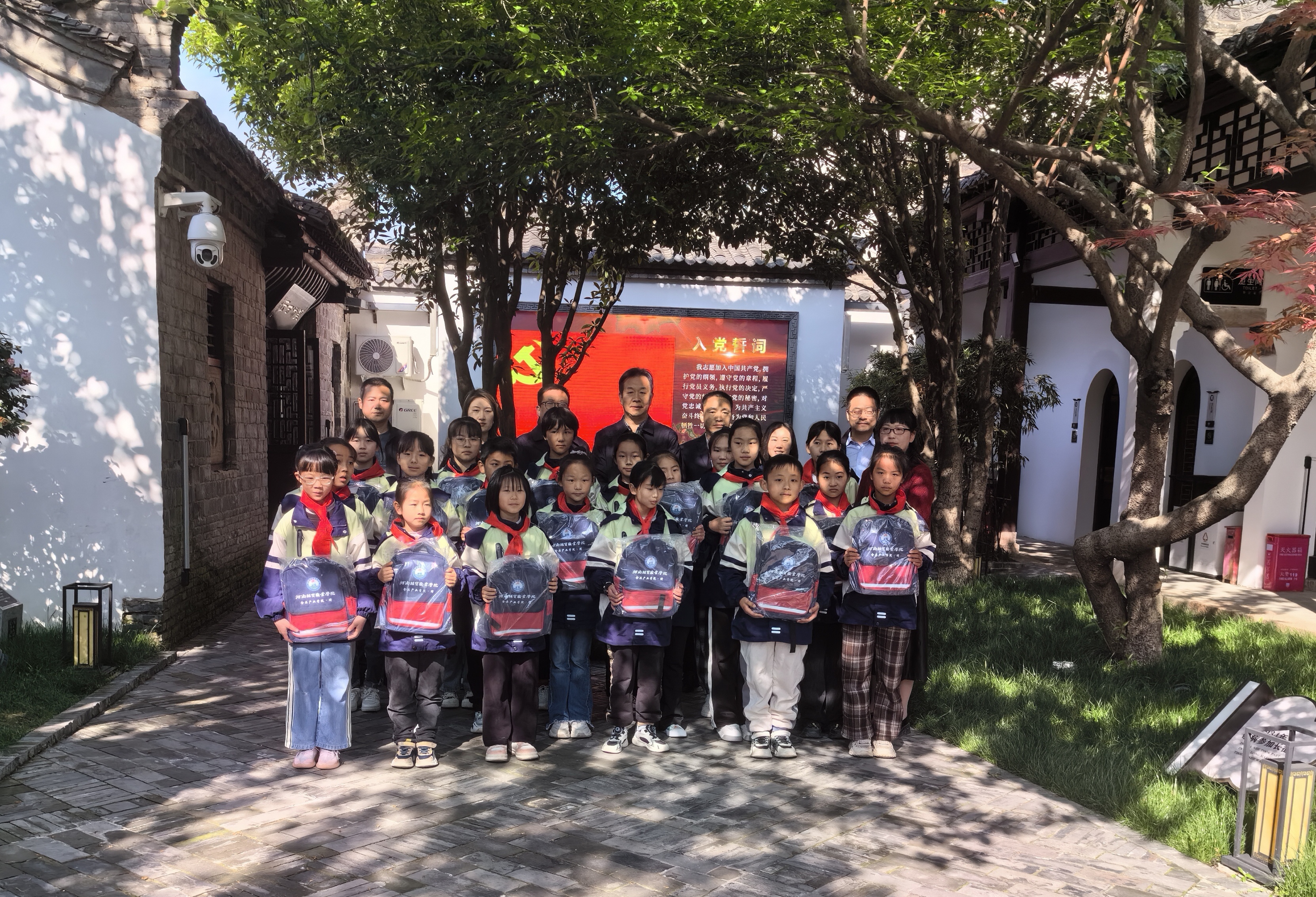 9日上午,一场别开生面的爱国主义教育基地参观学习活动在邓颖超祖居展开,志愿服务小组特别组织了省委办公厅结对帮创乡镇光山县晏河乡的小学生代表参加。讲解员用生动的语言,结合图片和实物,向孩子们讲述了邓颖超同志的生平事迹和她在革命斗争中的卓越贡献,让孩子们近距离感受邓颖超同志的革命精神和高尚品质。此次活动不仅让小学生们亲身体验了红色文化的魅力,更在心灵深处埋下了爱国主义的种子。相信在未来的日子里,这些孩子们将带着这份红色记忆,努力学习,积极向上,为祖国的繁荣富强贡献自己的力量,参观结束时,志愿服务小组向孩子们赠送了书包。紧接着,大家又前往晏河乡,见证了河南经贸职业学院食品产业学院向晏河乡幼儿园捐赠书包的温馨仪式。此次捐赠活动是河南经贸职业学院食品产业学院积极响应国家乡村振兴战略的务实举措,彰显了其积极履行社会责任、关心乡村教育事业的良好形象。食品产业学院副院长靳少华表示,学院将继续关注乡村教育,发挥教育资源优势,探索更多合作与支持措施,为乡村教育的振兴贡献更多力量。