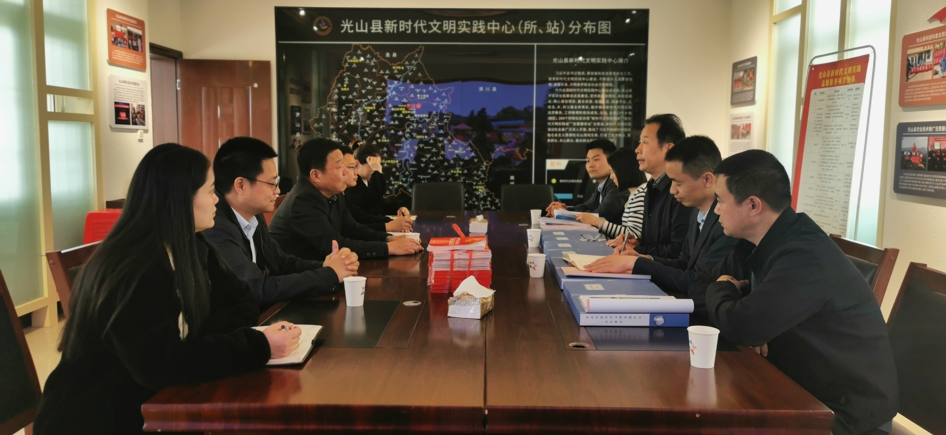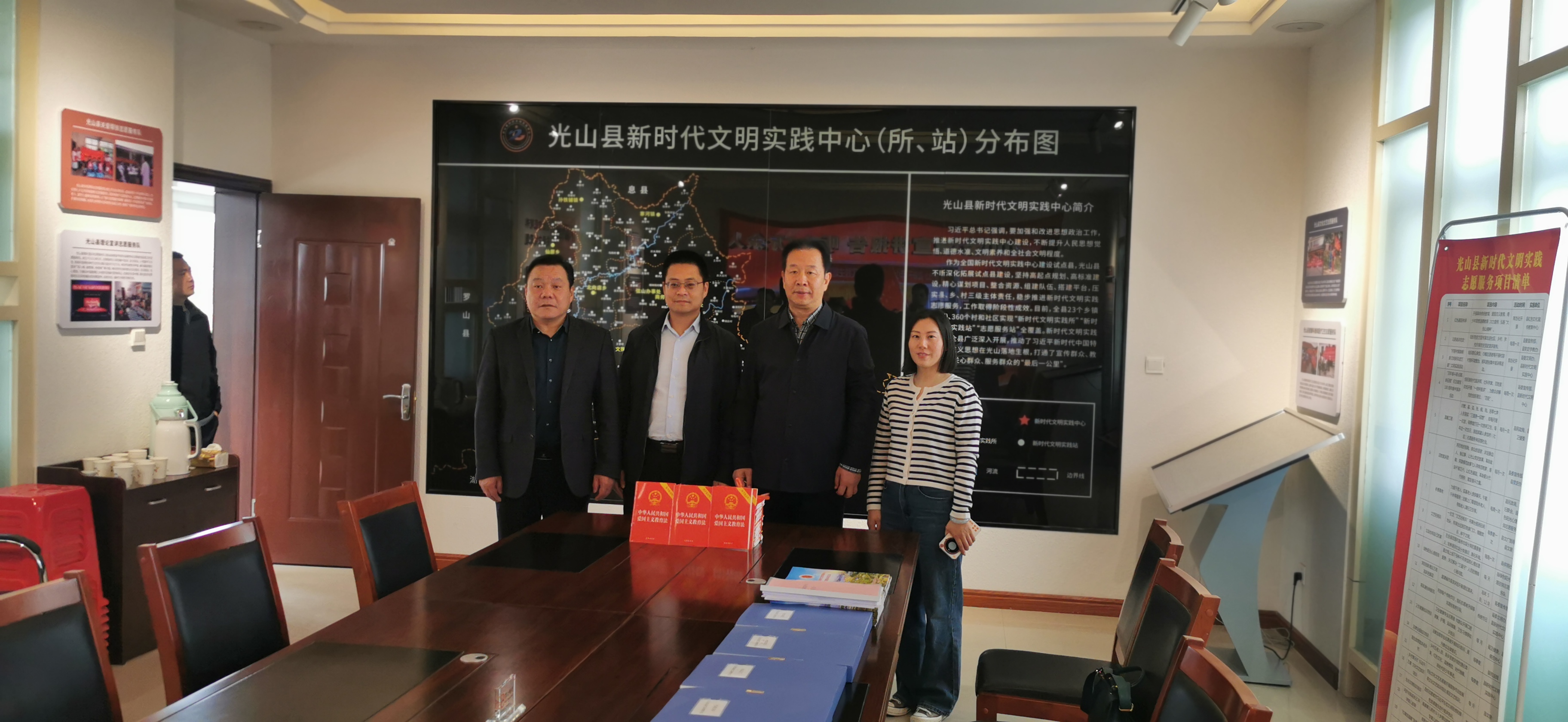8日下午,在光山县新时代文明实践中心,省委办公厅文明办一行与中心工作人员进行了温馨而深入的交流,详细了解了中心的建设进展、工作成果及特色活动,实地考察了各个功能区域。对中心在文明实践、志愿服务、文化传播等方面的工作给予了高度评价,在基础设施完善、志愿服务创新、人员培训加强、红色资源挖掘等方面提出了意见建议。随后,向中心赠送了200本《中华人民共和国爱国主义教育法》,希望这些书籍能够为中心工作人员提供更全面、更深入的爱国主义教育知识,进一步推动爱国主义教育的深入发展。中心相关负责人表示,将认真吸纳意见和建议,充分利用赠书,加强学习,不断提升自身业务水平和工作能力,为光山县精神文明建设贡献更大的力量。