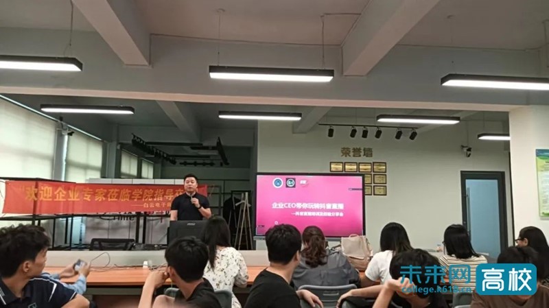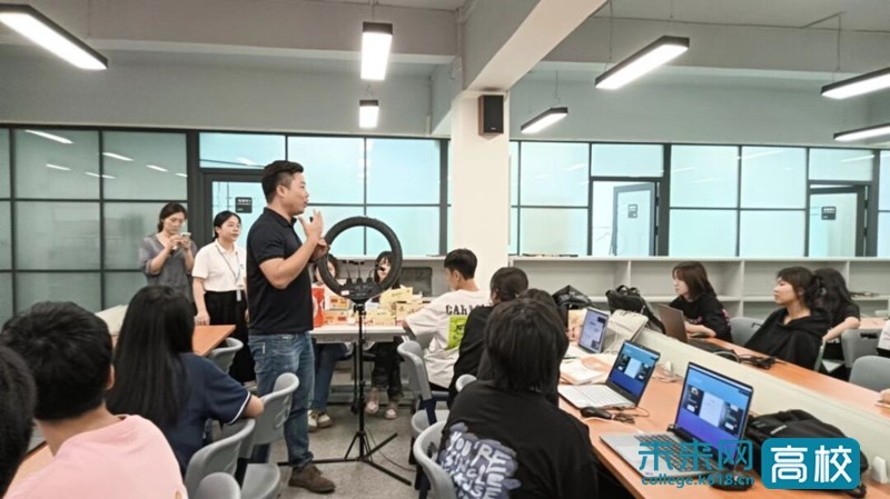 为了提高电商学子的直播实操技能,加强校企沟通,助力《直播策划与运营》课程的第二课堂技能实践,电子商务产业学院特邀广州市洲星食品有限公司企业导师和美东商学院CEO周龙恩走进校园,在电商直播基地进行了一场有趣有料的“抖音直播分享交流会”。