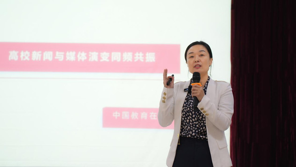 中国教育在线山东站主编闫文作了主题为“高校新闻与媒体演变同频共振”的专题报告。她指出,高校作为社会的重要组成部分,其新闻工作也面临着新的挑战和机遇。如何在新媒体时代把握媒体演变的脉搏,实现高校新闻与媒体演变的同频共振,是每一位高校新闻工作者需要深入思考的问题。她分析了高校新闻与媒体演变的相互关系,新媒体时代高校新闻的传播策略和创新路径,使在场师生更加明确了在新媒体时代学校新闻的发展方向。