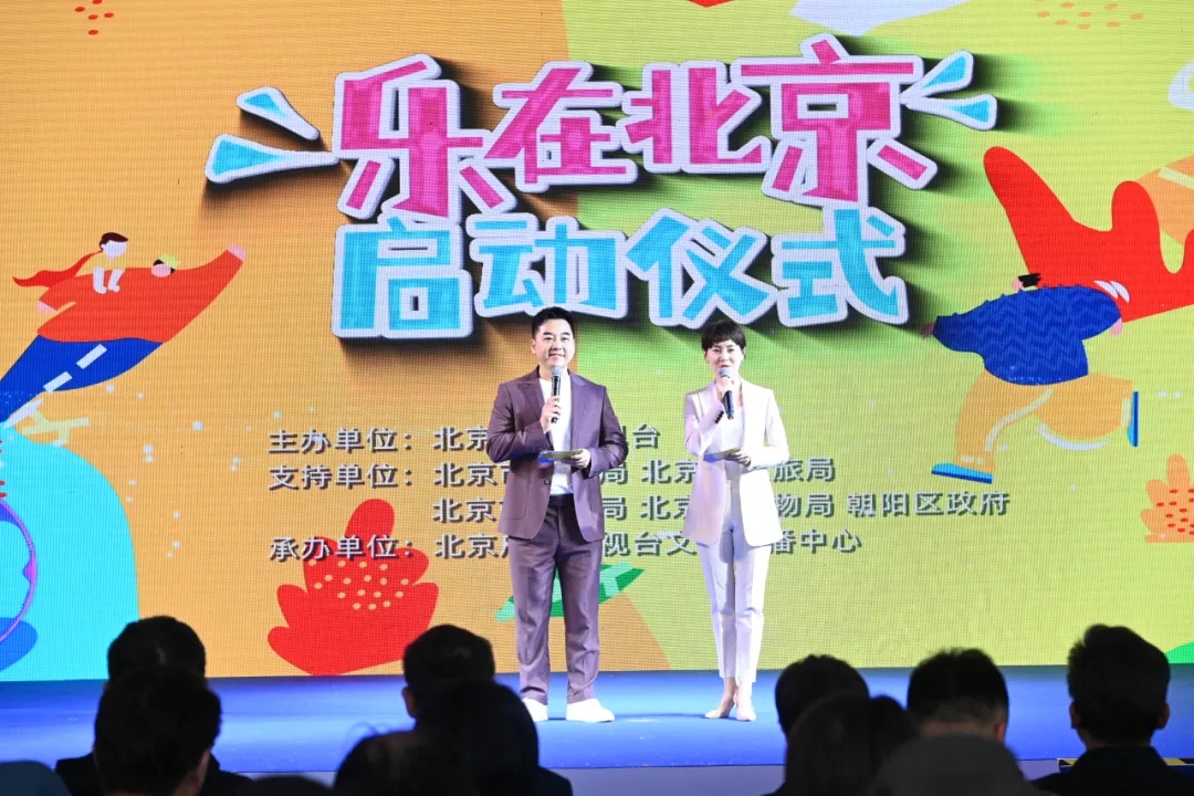 4月28日,北京广播电视台主办、北京文艺广播承办的“乐在北京”品牌启动仪式在朝阳公园隆重举办。市商务局一级巡视员李中双,市文化和旅游局二级巡视员常林,市体育局二级巡视员卢宏泽,朝阳区人民政府党组成员、副区长张冠彬,市文物局市场处干部鞠金哲,北京广播电视台党组成员、副总编辑李秀磊等领导出席并共同发布了“乐在北京”平台的品牌形象。