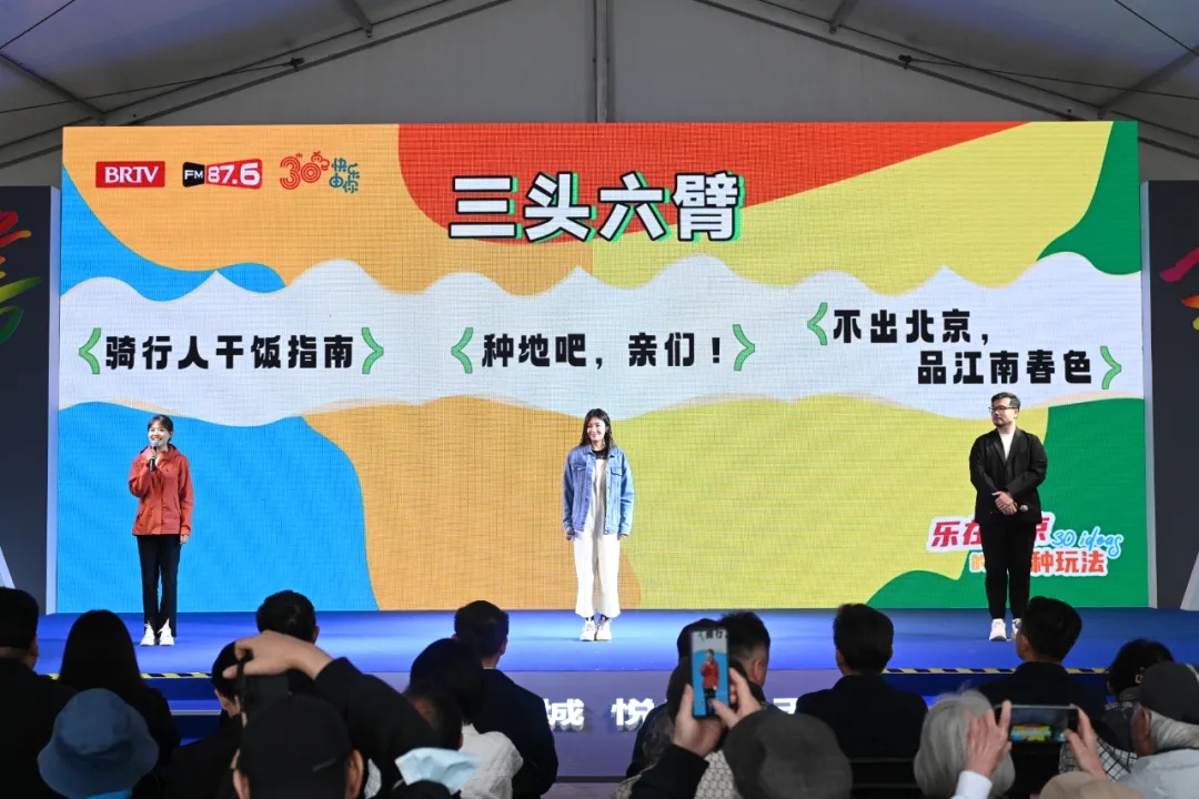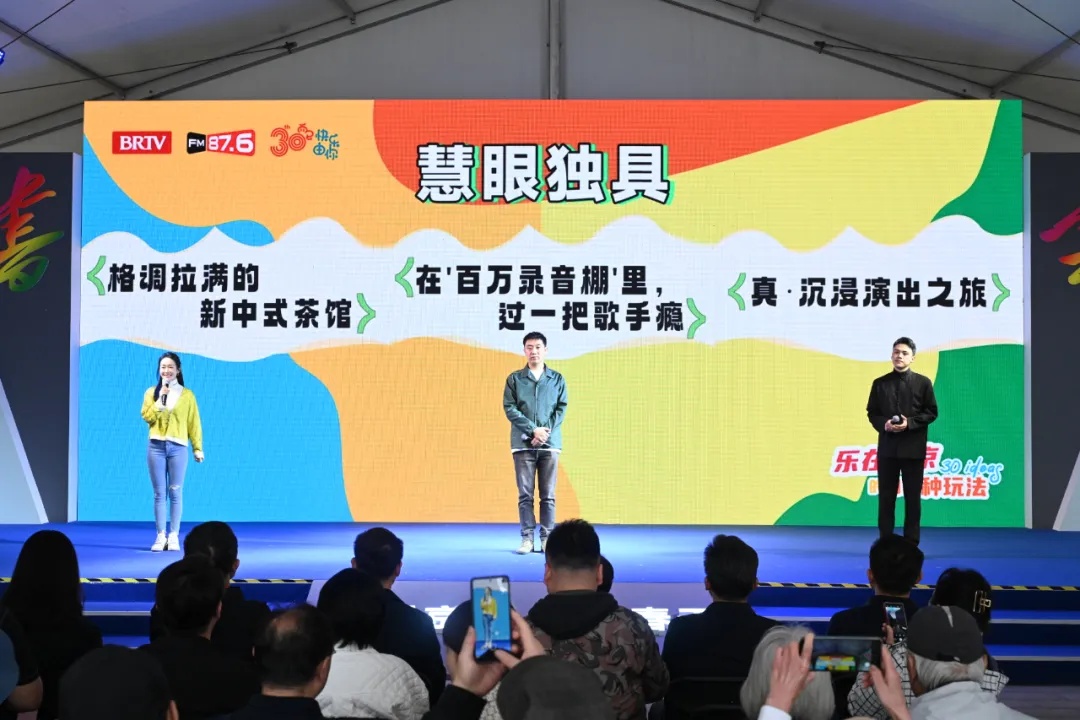 今年正值文艺广播开播第30个年头,三十岁生日之际,北京文艺广播推出了“乐在北京的30种玩儿法”系列融媒体活动,主持人化身玩儿法主理人,和听众、网友一起深度交互共创,挖掘推荐了【骑行人干饭指南】、【格调拉满的新中式茶馆】、【探寻藏在胡同里的博物馆】、【不出北京,尝江南春色】等独具特色的新玩法、新场景、新业态。一个月不到的时间里超过 40万用户在“乐在北京的30种玩儿法”H5 页面上参与互动投票,主理人和听众们一共贡献了200多个精彩选项,每一次玩儿法落地活动的报名都异常火爆,“乐在北京”的广播与新媒体内容通过电波和互联网触达超过1000万人次。活动现场公布了30种玩儿法用户投票榜单,详细介绍了全新亮相的“乐在北京”融合平台的品牌理念和平台优势。