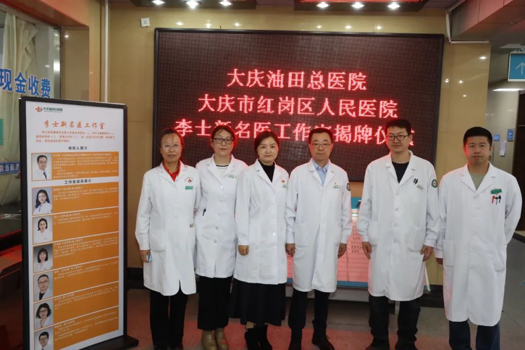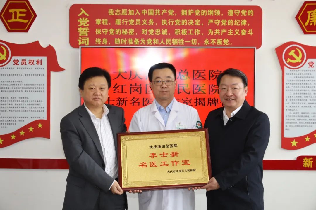 揭牌仪式上,大庆油田总医院副院长殷响,红岗区人民医院院长朱增强共同为“李士新名医工作室”揭牌。
