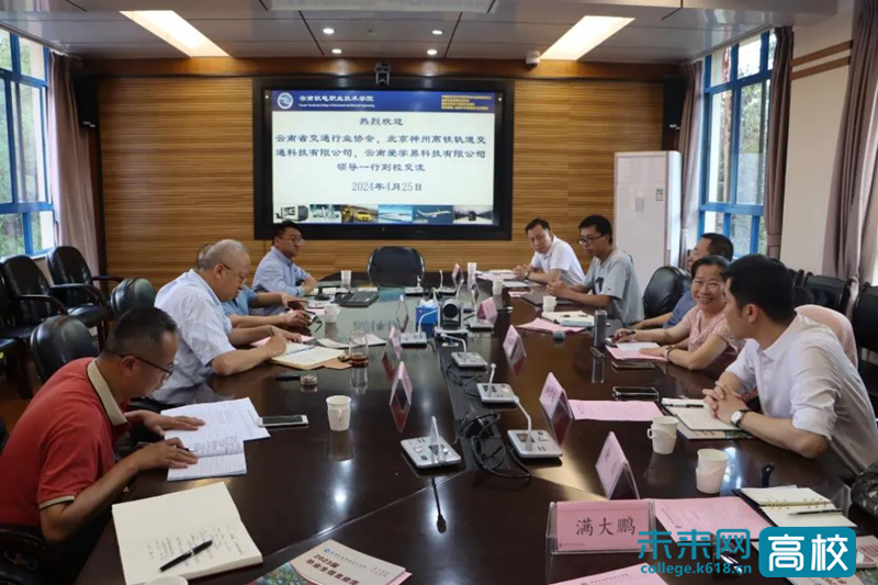 为深化校企合作、产教融合,共建轨道交通专业群,近日,云南机电职业技术学院与云南省交通行业协会、北京神州高铁轨道交通科技有限公司、云南爱学易科技有限公司举行了交流座谈会。云南机电职业技术学院党委副书记、校长伍星,云南省交通行业协会常务副会长邵玉华,北京神州高铁轨道交通科技有限公司副总经理孙雪亮,云南爱学易科技有限公司总经理黄坚,学校相关职能部门负责人及专任教师代表等参加会议。