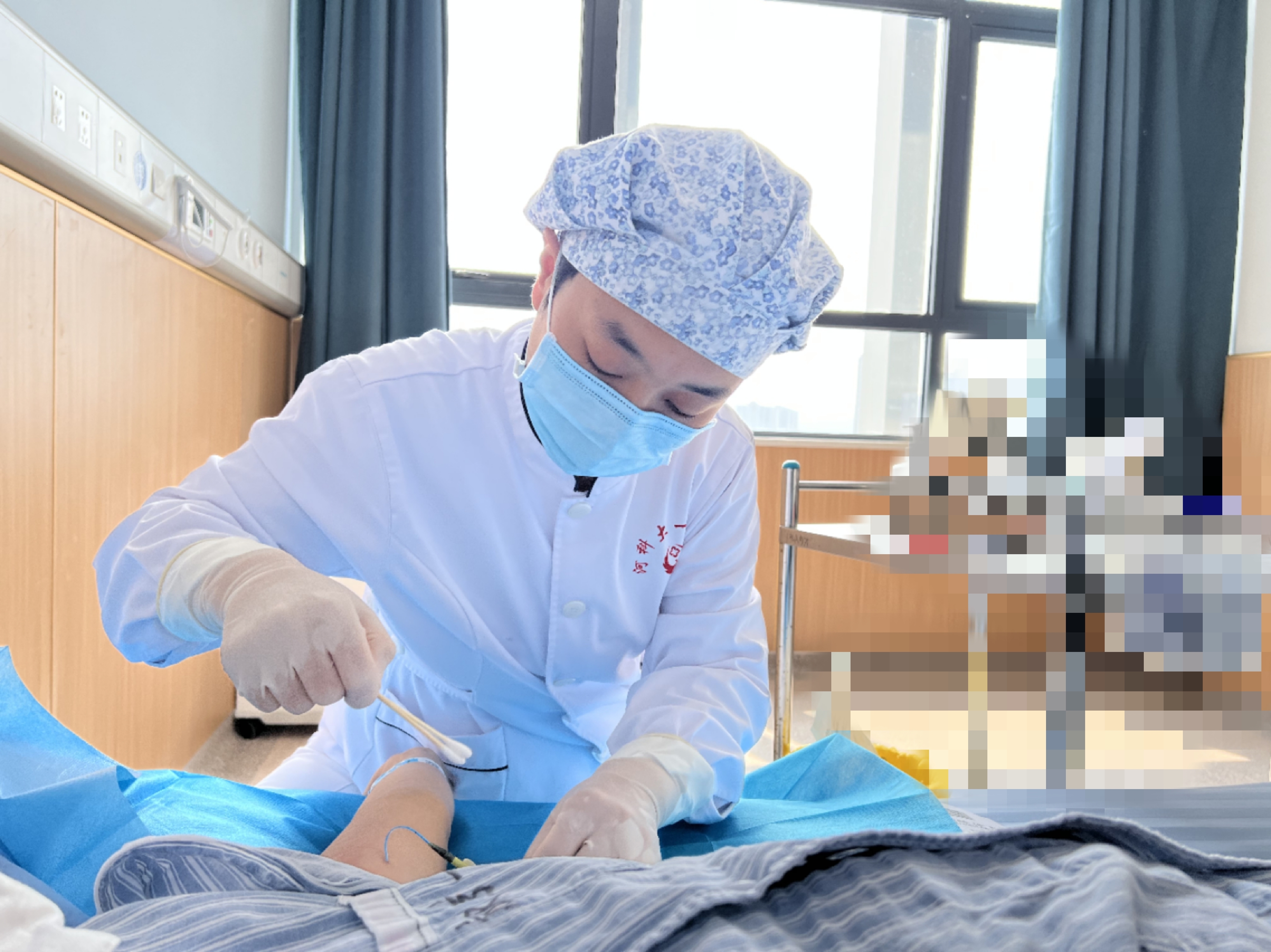 消毒、铺巾、超声引导下血管探查、穿刺、置入导管、心电定位导管尖端位置、贴膜固定、交代注意事项……徐远有条不紊地进行着一连串的步骤,还和患者聊着天,缓解他们低落的情绪。“我们接触的患者以肿瘤和血液病居多,他们的心情都比较沉重,在治疗过程中,我们会尽量多鼓励和安慰他们,尽力点燃生命希望之光。”