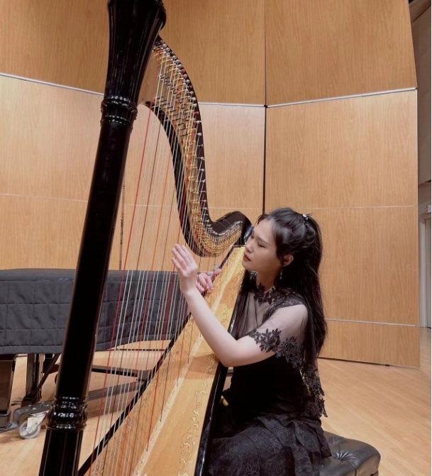 李伊蕊的竖琴之路始于对音乐的热爱和对梦想的追求。在启蒙老师的引导下,她决定踏上音乐之旅,于2018年赴美国深造,师从著名竖琴家Sonja Inglefield。面对语言、文化、学习环境的挑战,她以惊人的毅力一一克服,于2021年考入俄勒冈大学并获得全额奖学金。
