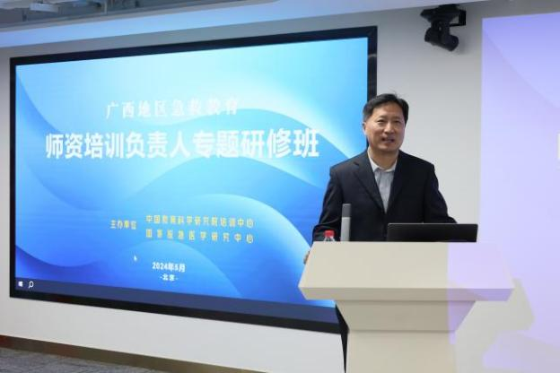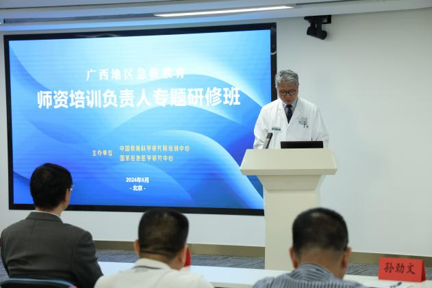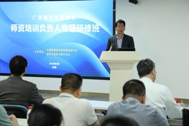 5月12日至14日,由中国教育科学研究院培训中心与国家应急医学研究中心联合举办的广西地区急救教育师资培训负责人专题研修班在(北京)国家应急医学研究中心研发教培基地举办。中国教育科学研究院副院长于发友、应急总医院副院长孙劲文、广西玉林师范学院副校长石维有出席开班仪式并致辞。国家应急医学研究中心应急医学建设办公室主任刘智主持开班仪式。广西壮族自治区13个地市的14所高校负责人近40人参加了研修班。