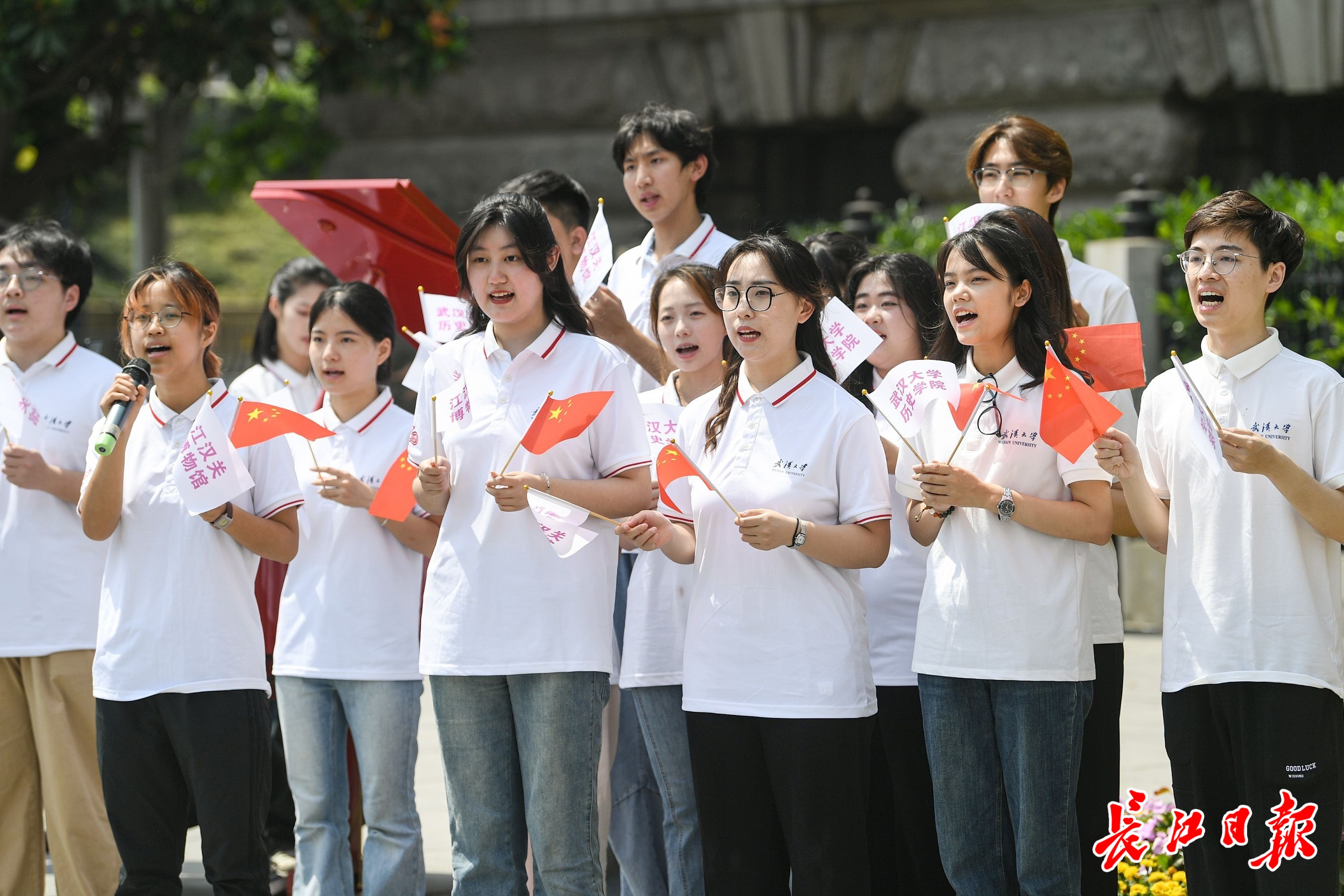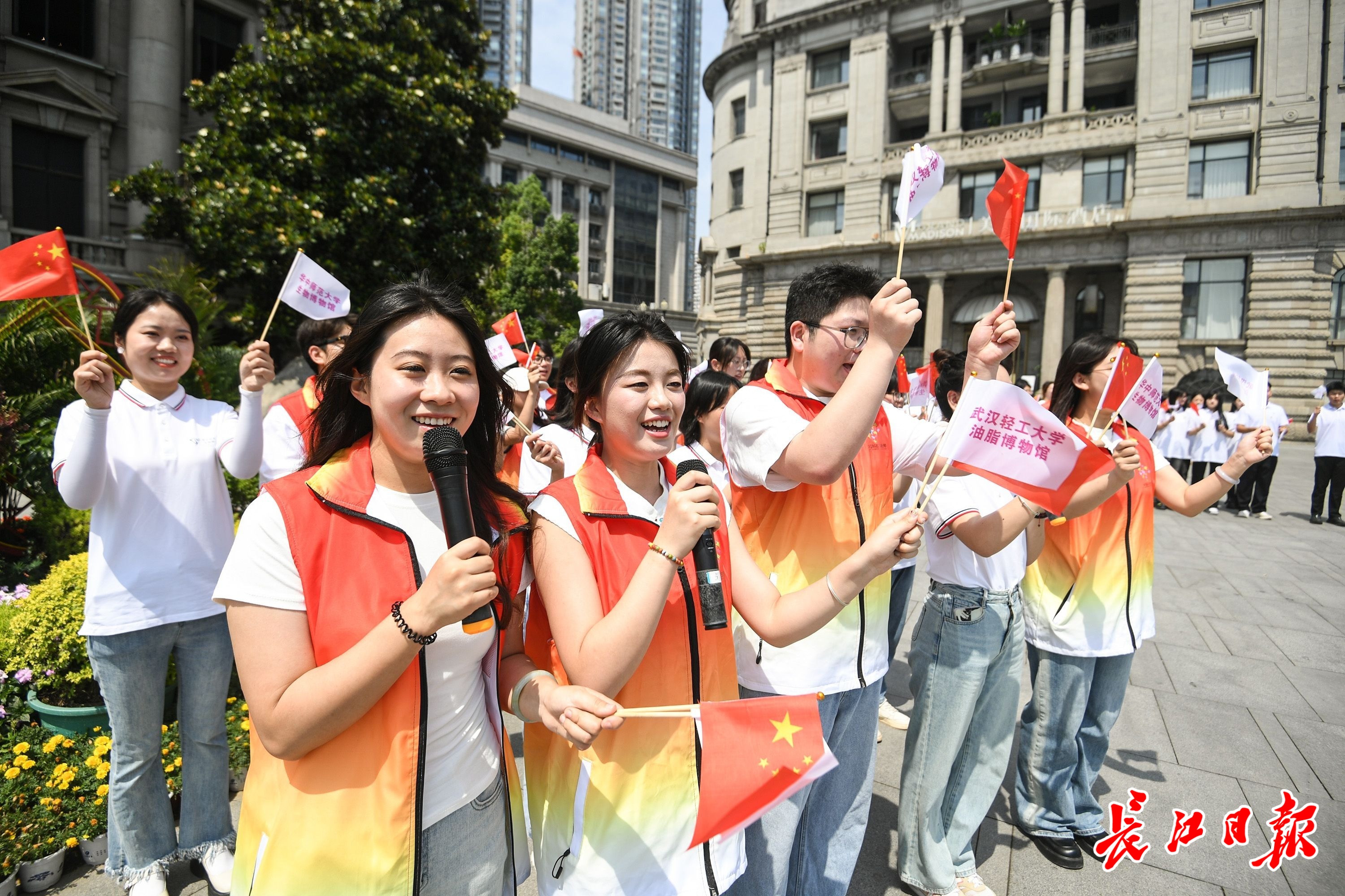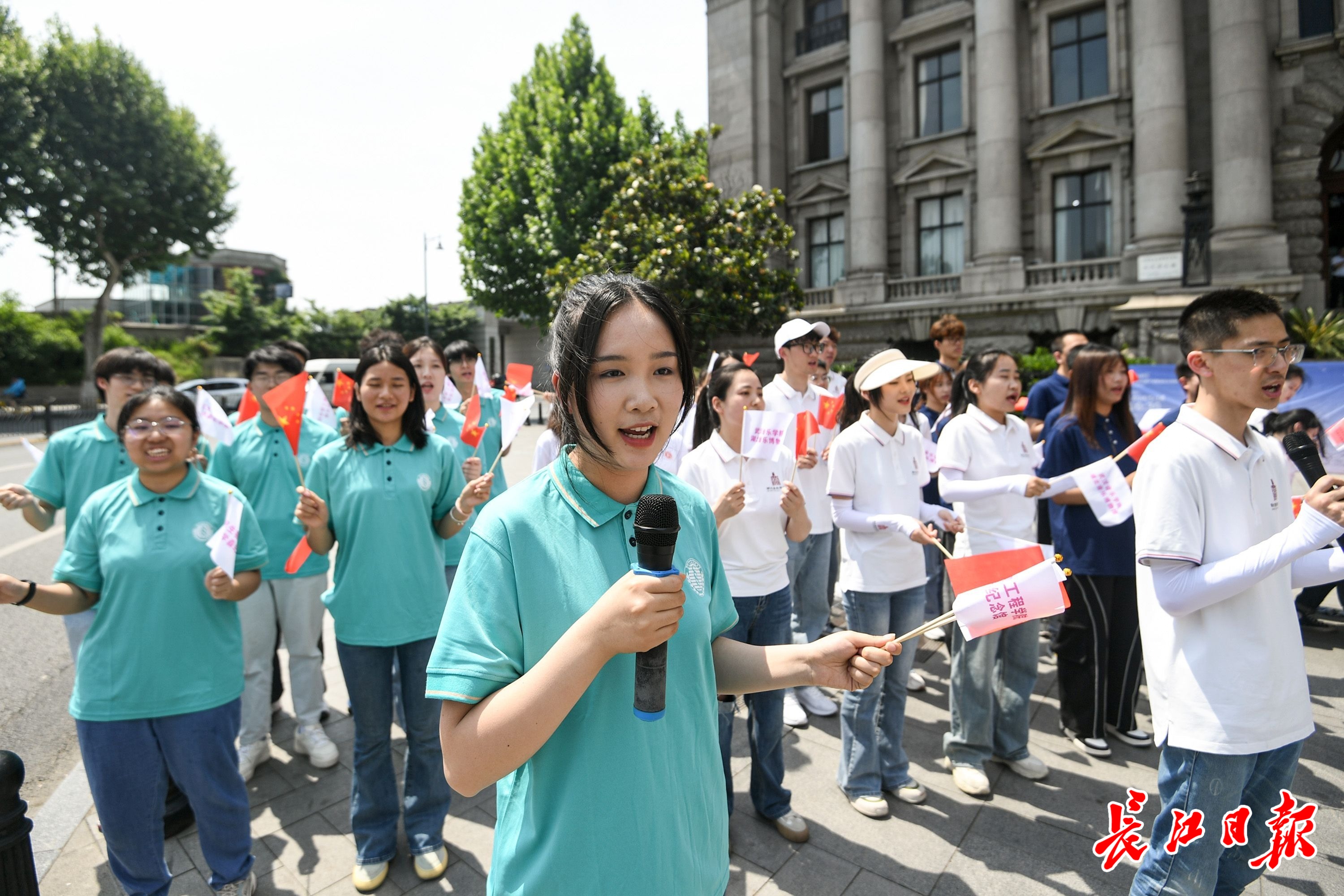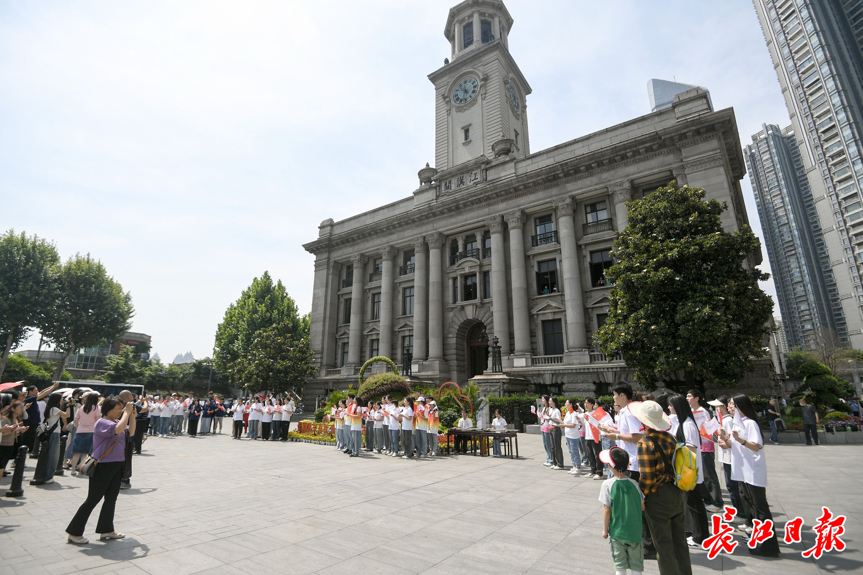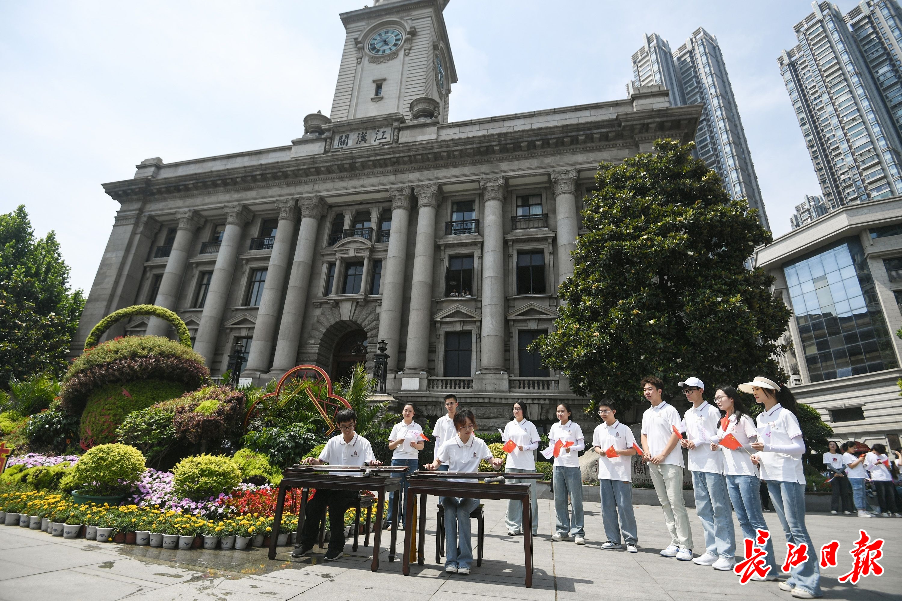 上午10时30分,江汉关博物馆广场上响起歌曲《在此》,来自武汉大学、华中师范大学、中南财经政法大学、武汉理工大学、武汉音乐学院、湖北经济学院、武汉商学院、武汉轻工大学、武汉铁路职业技术学院、武汉生物工程学院10所高校的100余名大学生,从广场四周的角落突然现身,走上广场。同学们即兴表演大合唱《在此》《年轻的朋友来相会》《我和我祖国》,其间还穿插了古琴合奏《高山流水》、钢琴独奏《洪湖水浪打浪》,用美妙的旋律和动人的歌声为观众和路人带来一份惊喜,展现了博物馆深厚的历史底蕴,彰显了现代文化的活力与创新,推动了多元文化的交流与展示,同时提升了公众对博物馆的参与热情。此次音乐快闪活动也是江汉关博物馆特展“流金岁月——世界文化遗产地鼓浪屿文物特展”的配套活动之一。