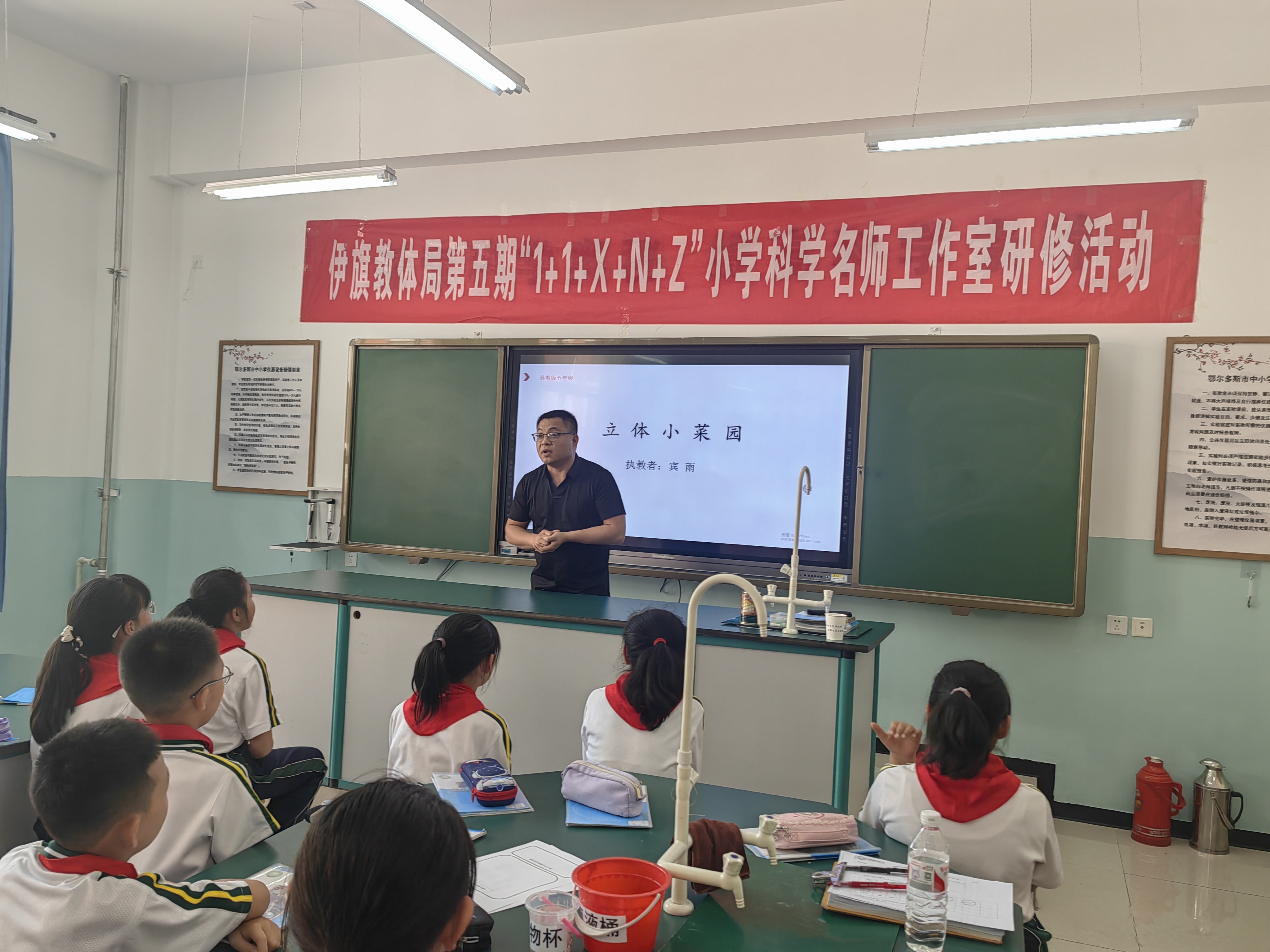 株洲日报讯(全媒体记者/谭筱)5月21日,内蒙古自治区鄂尔多斯市伊金霍洛旗第四小学开展了“立足科学课堂 发展科学思维(小学科学学科融合教学)”为主题的第六次研修活动,工作室导师、湖南省特级教师、我市宾雨小学科学工作室主持人宾雨受邀参加本次活动。