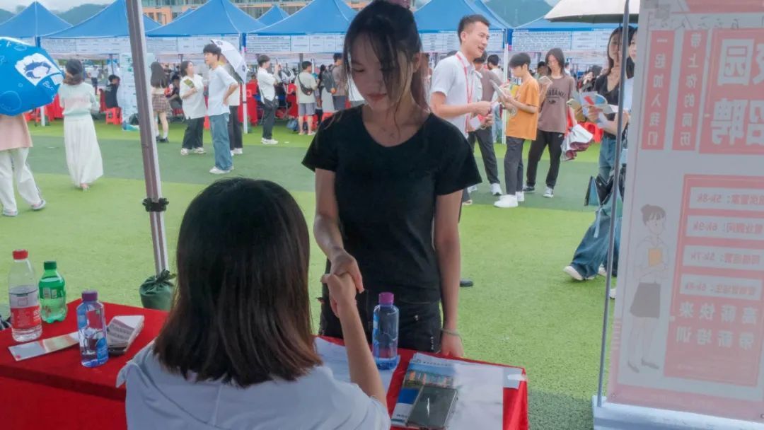 企业在展位前摆设宣传展板,热情地向参会学生发放宣传资料。参与求职的同学手持精心准备的简历走向各个展位,积极向招聘人员咨询企业的岗位需求和薪资待遇等情况。供需双方热情高涨,部分学生现场与企业达成了初步的就业意向。