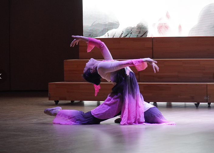 在激昂的管弦乐《我的祖国》旋律中,汇演正式拉开帷幕。湖北工程学院春晖管弦乐团的精湛演奏,将观众带入了一个爱国情深的音乐世界,令人心潮澎湃。随后,舞蹈《爱莲说》则以曼妙的舞姿和莲花的纯洁意象,展现了莲花“出淤泥而不染,濯清涟而不妖”的高洁品质,象征着人们应追求洁身自好、清廉自守的精神境界。
