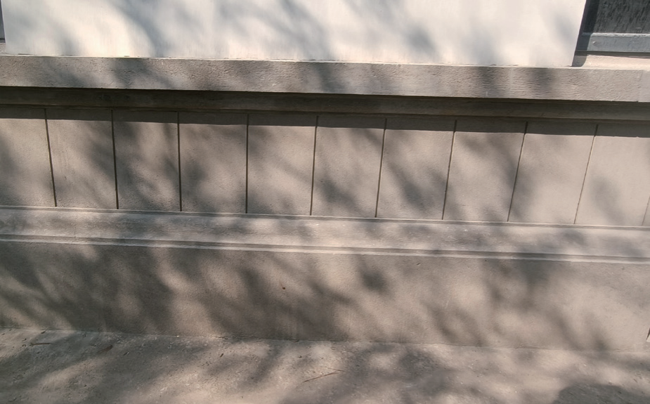 对于外立面,修缮工程根据原始图纸及做法,修补上部水泥砂浆外墙;经过木方分割条、手工结浆、手工面层、喷糊等流程,实现须弥座保护性修缮