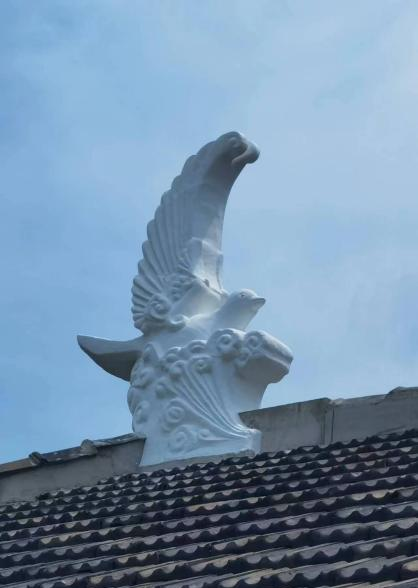 根据历史图纸,工程采用灰塑工艺复原和平鸽正吻。