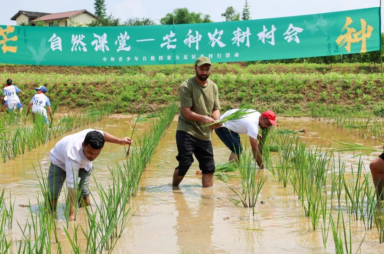 当芒种遇上端午节,会是什么样?6月10日,“留学重庆·读懂农历”中外青少年自然探索大足区乡村行活动在重庆市大足区拾万镇隆平五彩田园举行。