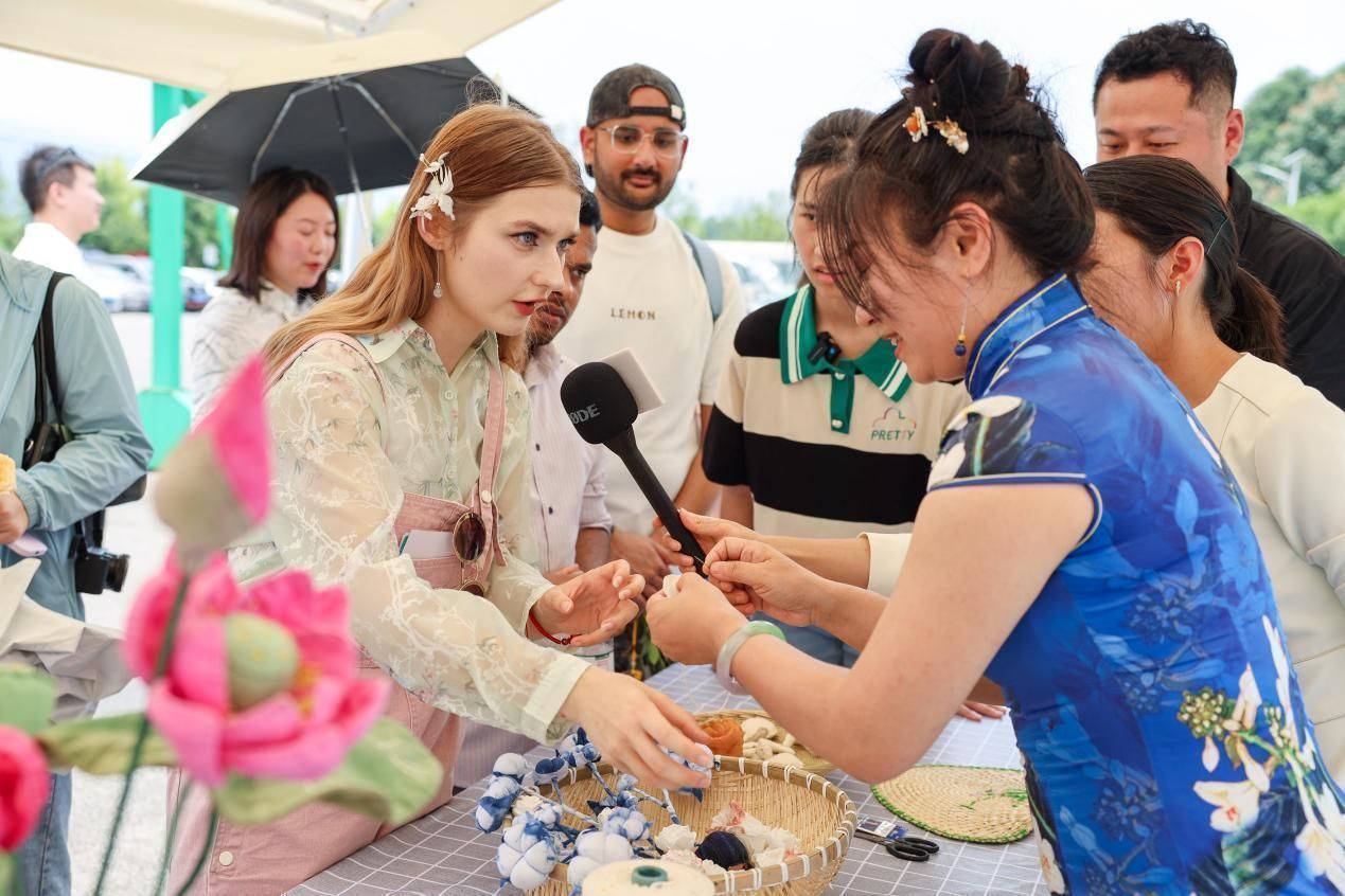 活动中,中外青少年还一起了解了大足的灰包松花蛋、非遗植物染绣技艺,并动手进行了制作。