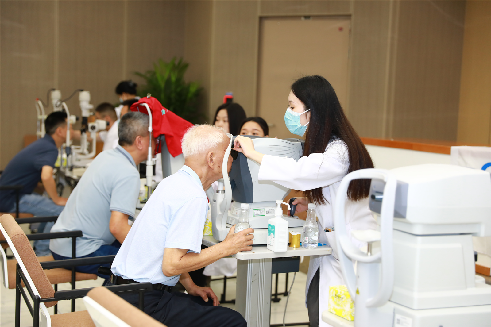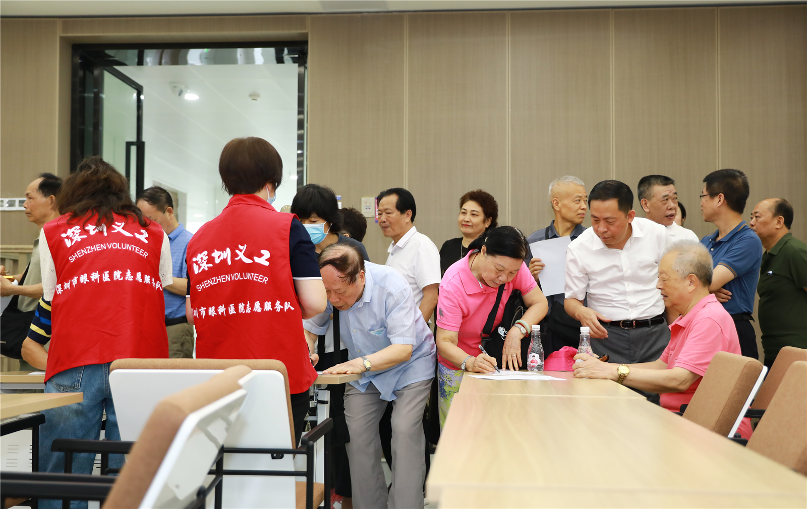 9时30分,多功能厅内人潮涌动。在义工的耐心引导下,离退休干部们有序排队,填写资料、视力检测、电脑验光、眼压检测、眼底照相、裂隙灯检查,一切井然有序。许多人退休前是一起工作的同事,趁着排队的时间,唠唠家常,分享自己的退休生活。“可以趁此次检查眼睛的机会,和同事朋友相聚,简直是一举两得。”一位退休阿姨笑着说。
