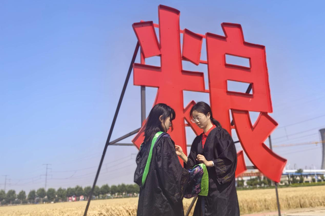 他们手中没有鲜花礼物,而是自家试验田里自制的一束束“麦穗花束”;没有精致的妆容,而是一张张洋溢着青春气息,被日复一日田间劳作晒得黝黑的笑脸;他们三五成群,或合照,或单拍、比爱心、摆姿势,把最美的画面定格在瞬间,一片片沉甸甸金黄的麦田,随着欢声笑语在诉说着丰收的喜悦。