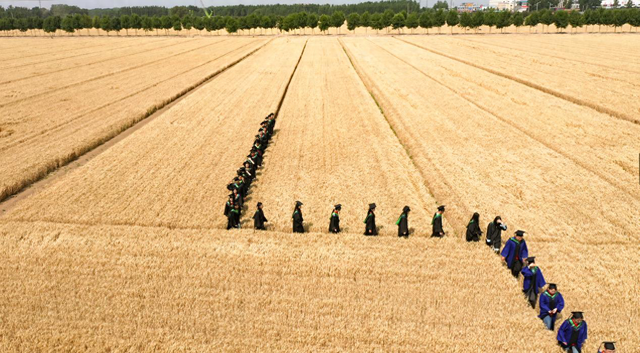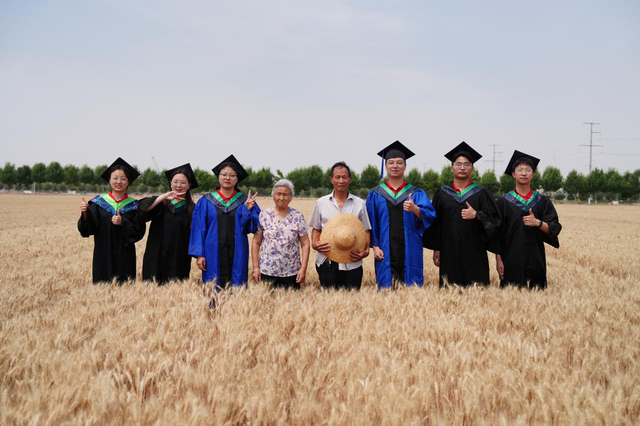 不到9点,河南农大资源与环境学院的30多名本、硕毕业生,已早早来到了离杨街科技小院不远的心连心农业高效示范园区试验田里,一场特殊而富有意义的毕业照拍摄正在进行。