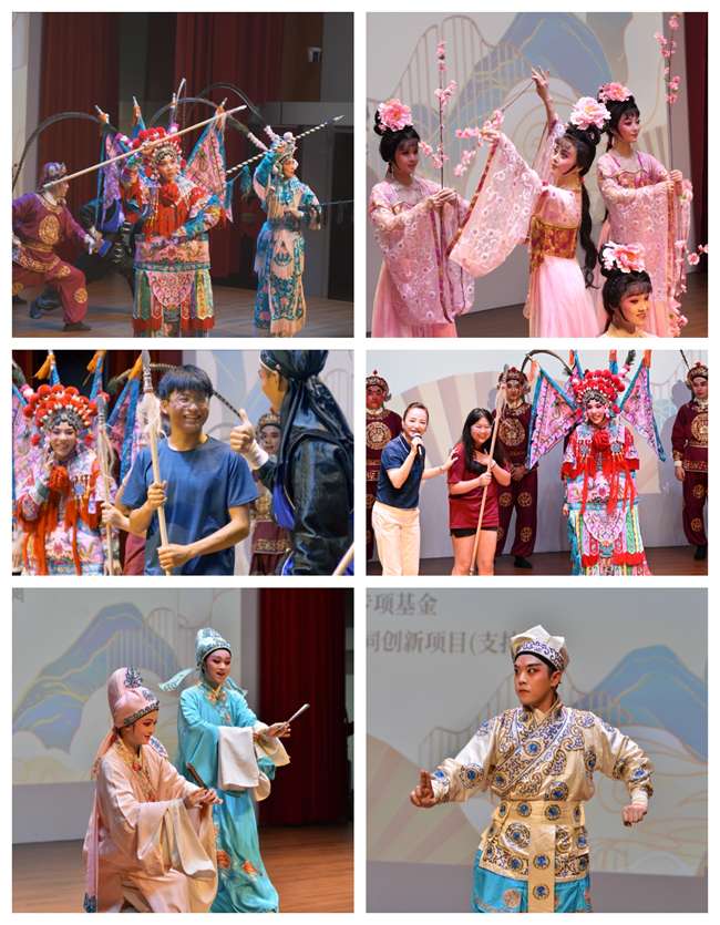 晚会别开生面,除了《踏春》、《十八相送》、《探谷》等传统歌仔戏剧目表演,还穿插了很多生动有趣的歌仔戏知识,歌仔戏名称的由来,歌仔戏的特有乐器大广弦、月琴,歌仔戏的经典行当人物小生、旦角等,舞台上不仅展现了令同学们如痴如醉的精彩表演,也生动呈现了歌仔戏中不同角色的化妆、服装、道具以及鲜明造型风格,深深吸引了在场的师生。表演结束后,有兴趣的同学们还走上舞台,向武生学习表演棍术和舞刀。