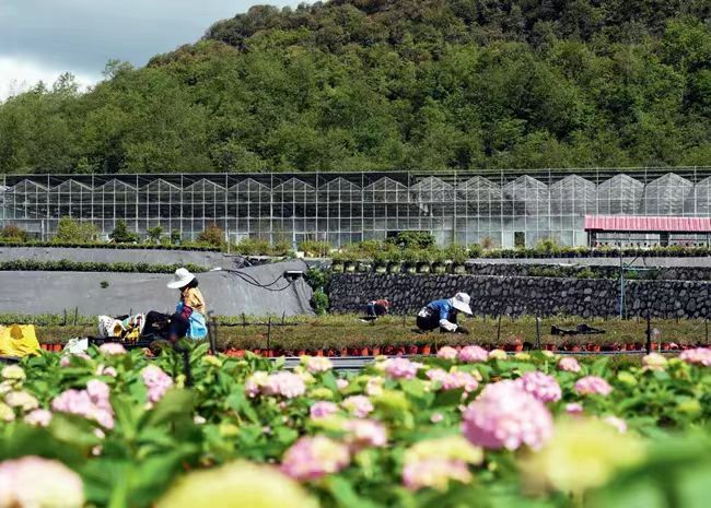 百里杜鹃汇境花卉科技园占地220余亩,采取“种苗培育+技术支持+电商回购+农户增收+绿色发展”的产业模式,实现绿色循环农旅产业高质量发展,为当地提供稳定就业岗位,带动当地农户参与增收致富。