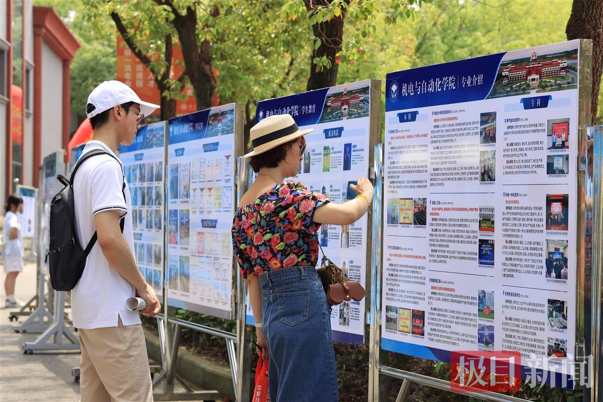 咨询会现场,130余所高校展位沿着林荫道依次排开。入口处,《首义如此多娇——二十四年办学成果展》分为十二篇章,图文并茂地展示学校概况、学科专业、人才培养、校企合作、师资队伍、科研服务、党的建设、合作交流、校园文化、优秀校友、校园风貌等情况,吸引大批考生及家长驻足观看。