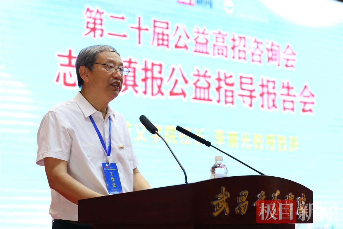 上午10时,以“高招咨询,志愿填报”为主题的公益指导报告会在首义礼堂举行,现场座无虚席,济济满堂。报告会前,武昌首义学院校长李崇光对前来参加高招咨询会和校园开放日的学生和家长表示欢迎,他介绍了学校办学理念、办学条件、学科专业建设、校企合作、人才培养、师资队伍、社会声誉等方面情况,现场不少学生和家长对学校表示出浓厚的兴趣。高考研究专家、华中师范大学教授、博士生导师胡向东,随后为大家详细地解读了志愿填报规则的变化以及应对技巧。