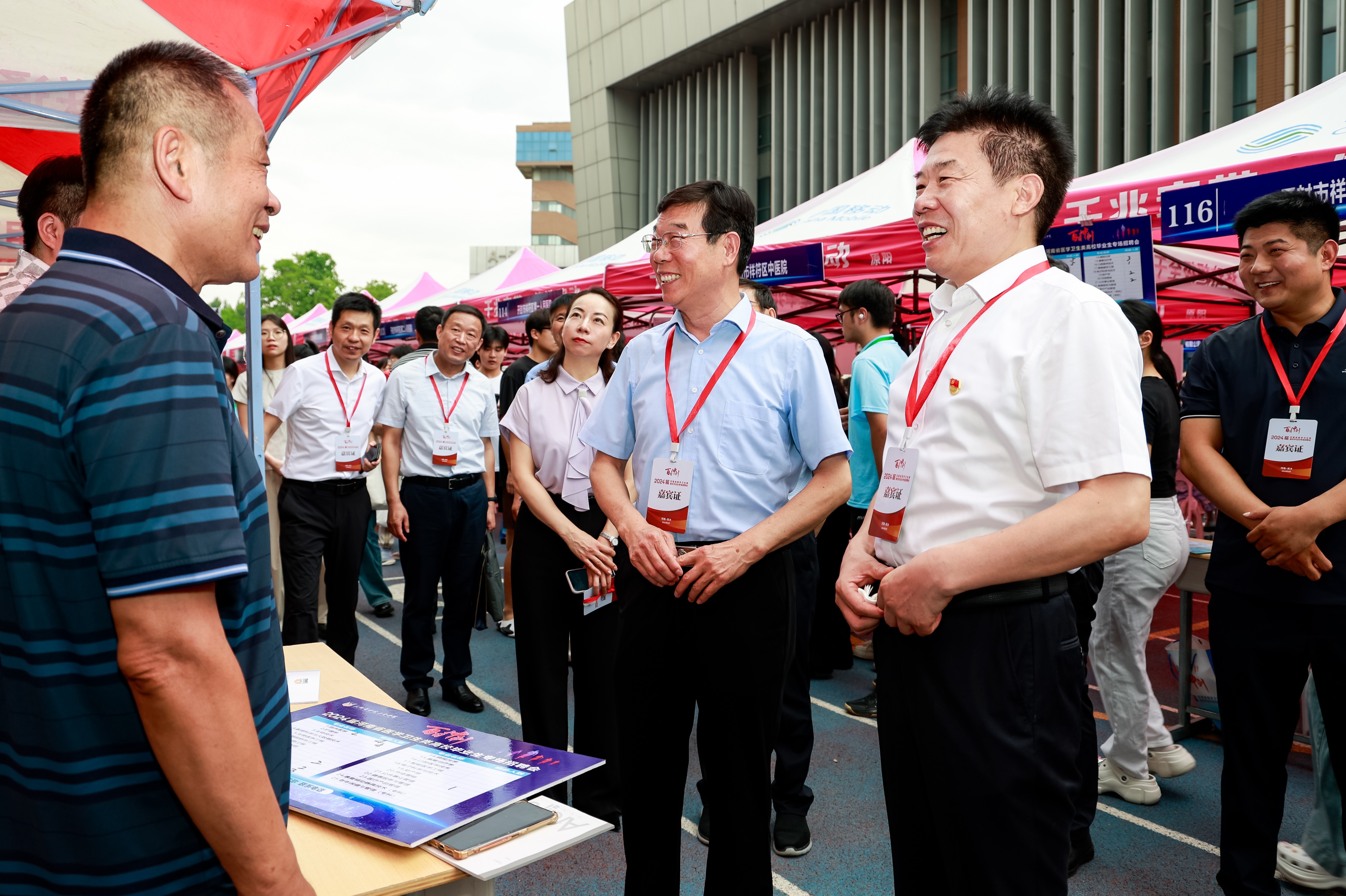 开幕式后,胡万欣、吴建峰一行在李庚、李琼等人的陪同下,实地调研了招聘会现场,并与参会单位亲切交流。胡万欣指出,希望校企合作进一步深化,为毕业生创造和提供更多实践机会与就业岗位,推动产学研协同发展,实现校企互利双赢、共谋发展的良好局面。