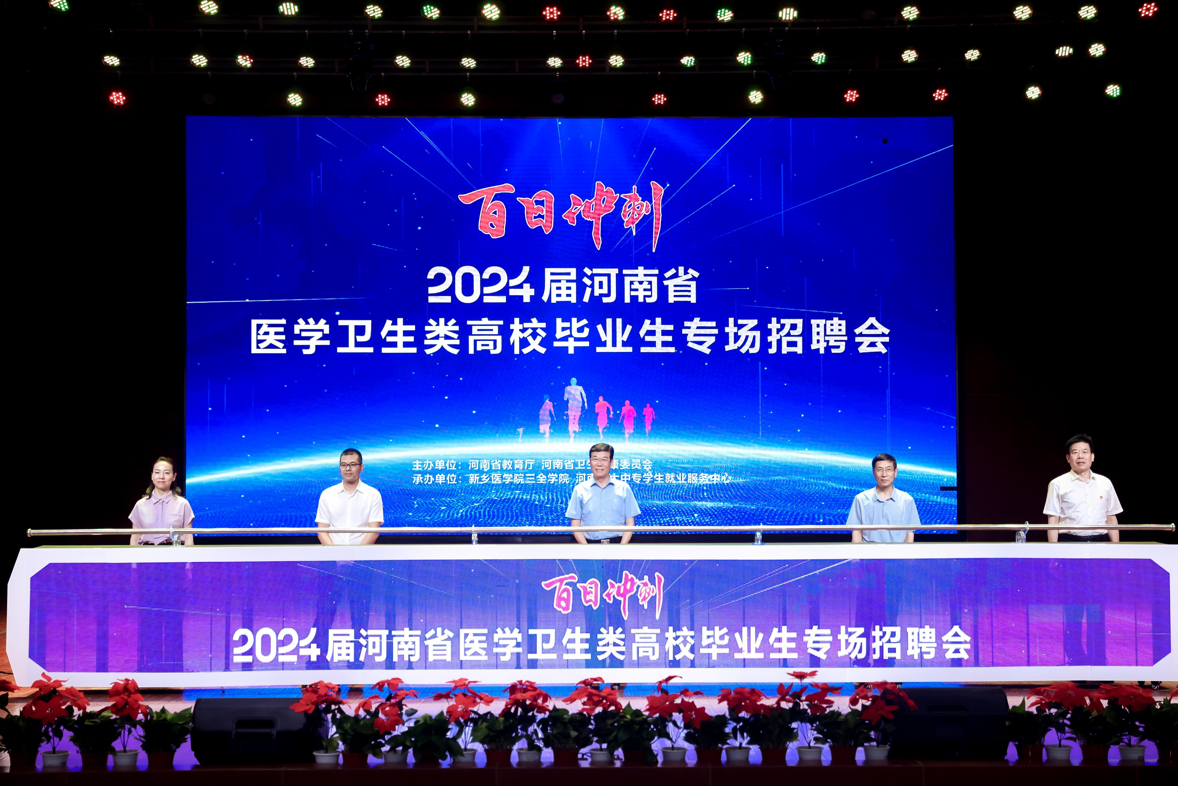 6月14日,由河南省教育厅、河南省卫生健康委员会主办,新乡医学院三全学院、河南省大中专学生就业服务中心共同承办的“百日冲刺”2024届河南省医学卫生类高校毕业生专场招聘会在新乡医学院三全学院成功举行。省教育厅二级巡视员胡万欣,省卫生健康委员会二级巡视员吴建峰,湖北省黄石开发区·铁山区人社局局长叶红波,新乡医学院三全学院党委书记李庚、院长李琼及全体校领导出席开幕式。开幕式由新乡医学院三全学院副院长顾欢主持。